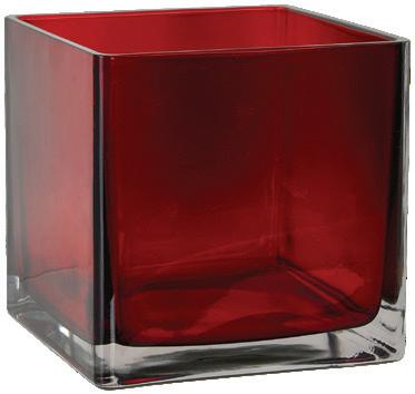 Cube with Lip. Glass. 43/4"H, 41/4"opening. Red. Case of 12. S11291