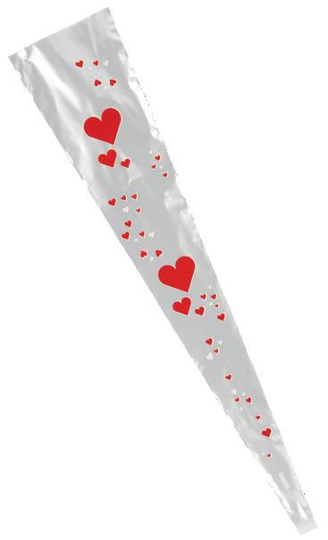Overall: 26"H. Clear with red and white hearts. Pack of 50. S22541