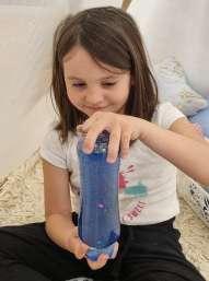 Promatranje „čarobne boce“ je jedna od aktivnosti mindfulnessa koju većina odgajatelja nudi djeci već u jasličkoj dobi, a isto tako je primamljiva i odraslima jer djeluje vrlo umirujuće. Za izradu vam je potrebna prazna plastična boca s koje treba ukloniti tragove etikete, ulje za bebe u koje možete staviti šljokice (možete i perlice), dodati vodu koju ste obojali prehrambenom bojom, zatvoriti i zalijepiti da biste spriječili otvaranje i izlijevanje. Nakon toga možete zajedno uživati u čaroliji koju vam nudi ova „čarobna bočica“.