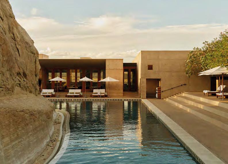 Set across 900 acres of Utah’s otherworldly red-rock landscape, Amangiri and its sister site, Camp Sarika, offer a truly zen desert escape. Amangiri’s sleek suites and cliffhugging pool reflect the stillness of the surrounding canyons, while Camp Sarika’s luxe tents invite fireside connection under the stars. The 25,000-square-foot Aman Spa blends seamlessly into the landscape, offering outdoor treatments, butte-top yoga and mindfulness walks that root guests in nature. For honeymooners seeking a reset, the three-night Desert Wellness experience is a standout. Serene, secluded and soul-restoring, Amangiri is where luxury meets the raw beauty of Canyon Country. aman.com/resorts/amangiri