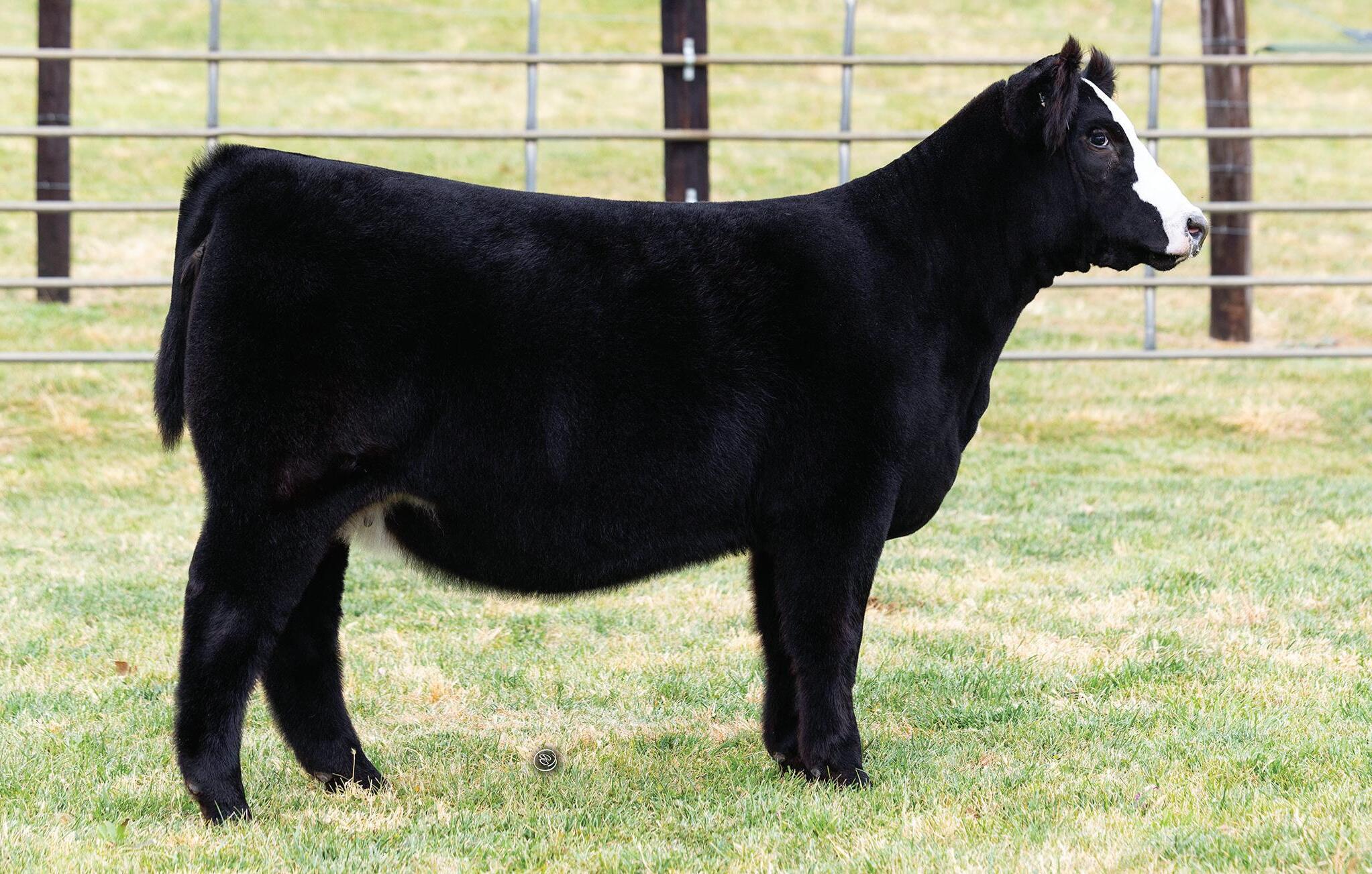 There is no doubt in my mind that the dollars this one can generate are endless. She’s as stout and wide as you could ever make one with an incredible look and presence and covered in soft jet-black incredible hair. Mustang Sally’s versatility is unwavering in her ability to appeal to both seed stock cattlemen and the pickiest of show cattle connoisseurs. With the success of the Here I Am x Roxi mating I wouldn’t bet against this pedigree at generating ridiculously good show steers at all. She’s loud and eccentric in her outline and unmistakable in her power. Roxi is doing so many incredible