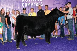 Angus with power, punch with big husky feet that can get out and travel. The eldest in a trio of siblings that are full sisters to the dominant Lemanager heifer that captured the Supreme Female title at the Illinois State Fair! She is simply a powerhouse but with style and grace. Fat-legged and hugefooted with a big opened-up rib cage that is still long-necked and eyeappealing. 34M’s added substance is so rare in this breed you can’t help but