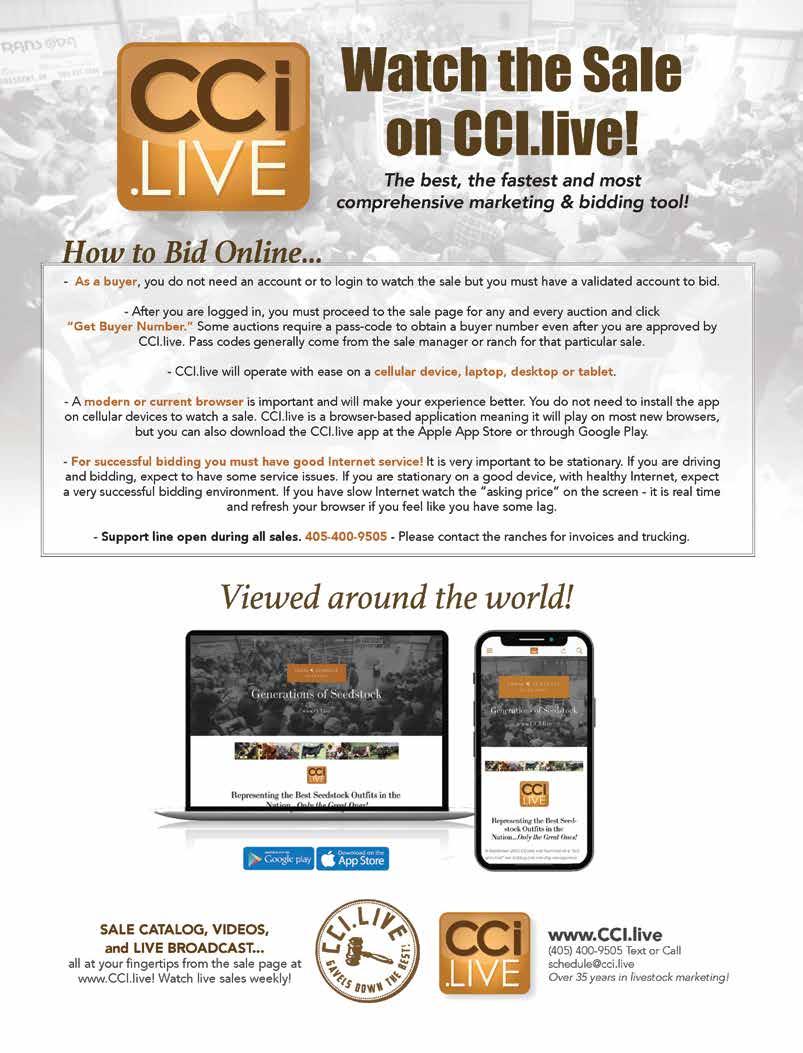 Cattle sell per the terms and conditions of the American Angus Association. Announcements from the auction block/supplement sheet take precedence over the information printed in this book. No cattle will be loaded until paid in full. Terms are cash, good check with proper ID.