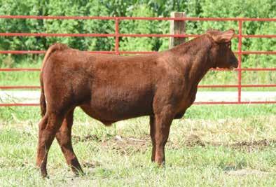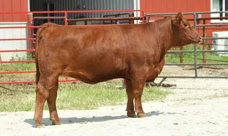 Sam backed by our Dallas donor. Here’s an easy fleshing bigger outlined female. 406M comes with the cow power and is safe in calf to Lover Boy for a likely red calf next spring. Female is halter broke.