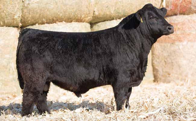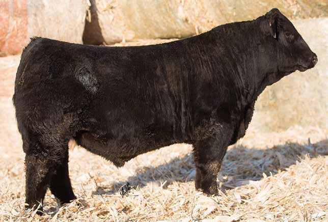 A solid black son of the now deceased SAM, his sire group has been highly sought after the last two years and bulls like this are the reason why. Big footed, wide based, and stylish on the profile. We had 7 of these SAM x 704D calves last spring and none of them found their way to the cull pen. Extra predictability in this mating.