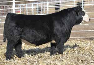Adj BW: 80 • Adj WW: N/A A striking, dense made son of the high selling Canadian Sire Wheatland Man O’War. This brockle faced bull comes with extra depth of body, added length, and an attractive look. Backed by Pays to Believe on the bottom side make this guy one to keep back the heifers out of. CE BW WW YW ADG MCE Milk MWW Stay 7 3.0 72 104 .20 3 24 60 8 DOC CW YG Marb BF REA API TI 9.2 26.4 -.31 .19 -.057 .73 95 68
