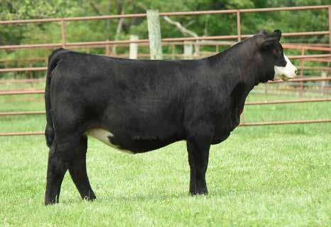 This baldy daughter of SAM by 41D just simply gets better and better every day I see her. She’s a little younger and greener than her sisters but when you study her lines I feel that when this one hits her peak she’ll be a force to be reckoned with. The Wall’s family of West Virginia purchased a full sibling to this heifer last fall and she has been shown very well for them earning multiple Champion and/or Reserve Breed Champion honors. Study her video and I’m sure you’ll understand the value stored within this breeding piece.
