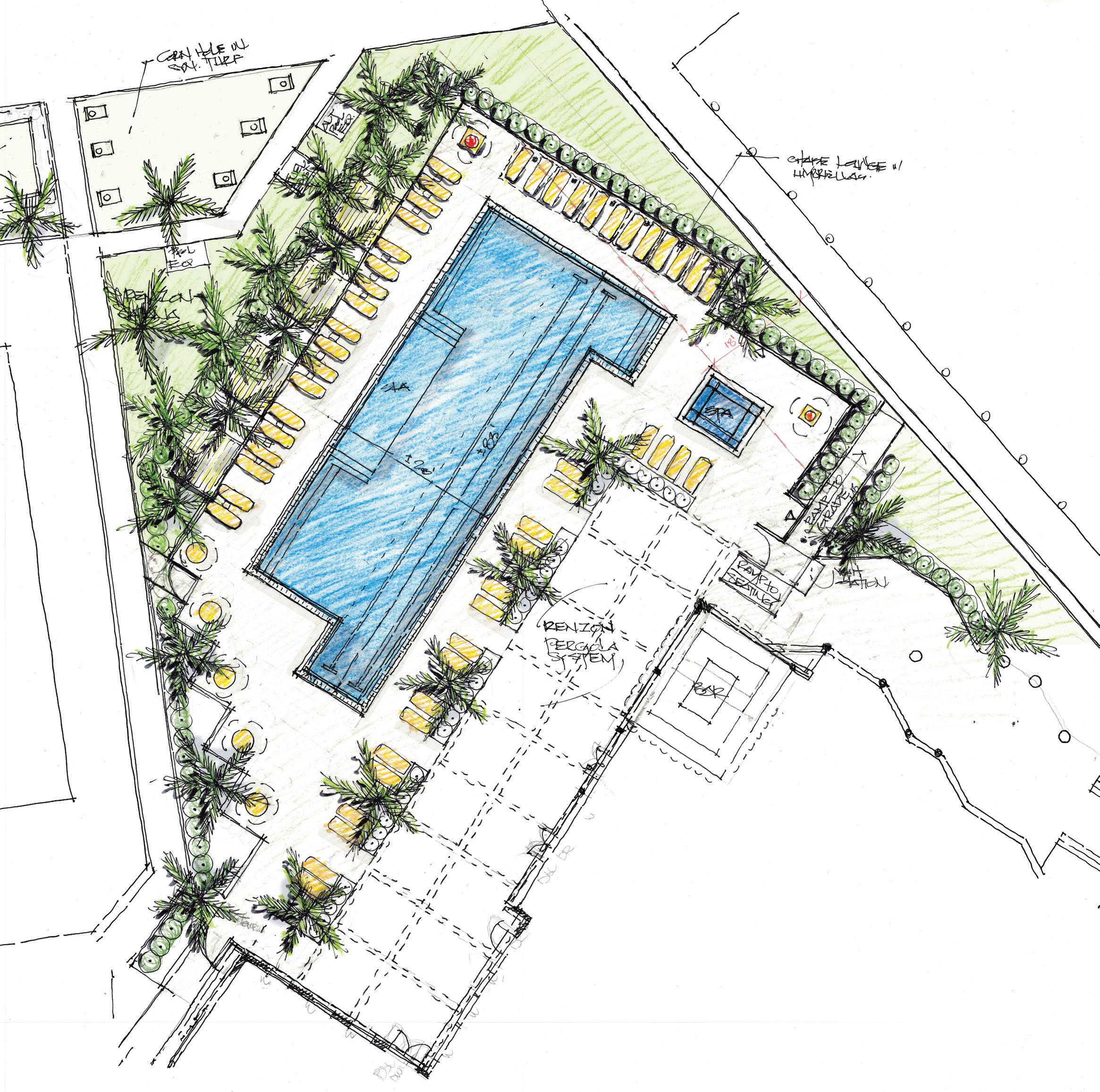 DWY offered a solution that elevated the entry to create a more fitting sense of arrival, re-imagined the pool amenity deck to better accommodate guests during high occupancy time periods, added private cabanas for increased revenue opportunities and developed a more fitting exterior restaurant experience.