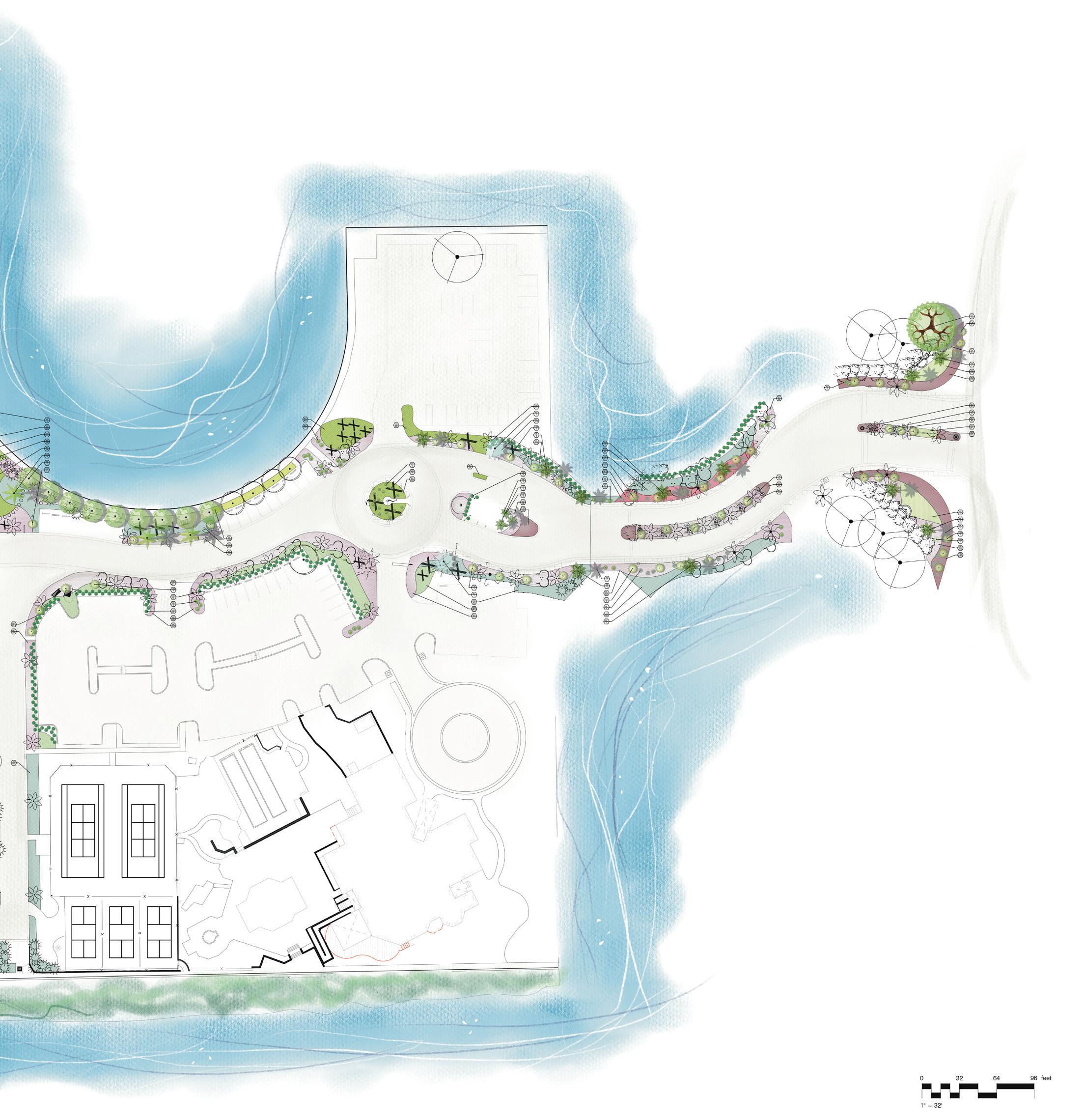 Working in collaboration with Machado Silvetti, DWYLA anchored the new pavilion within the campus, enhancing connectivity while introducing storm-resilient native plantings, improved circulation, and refined outdoor gathering spaces.