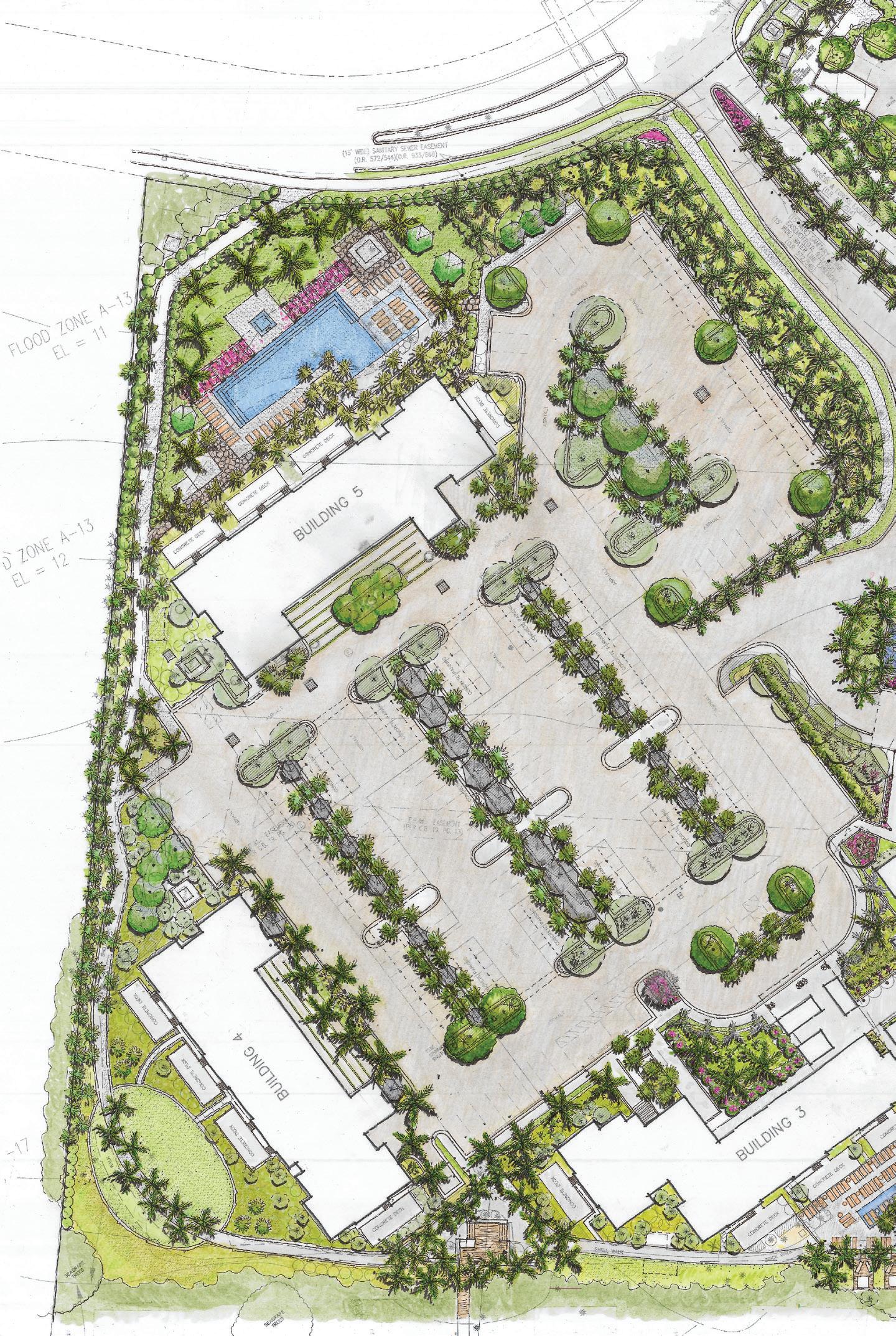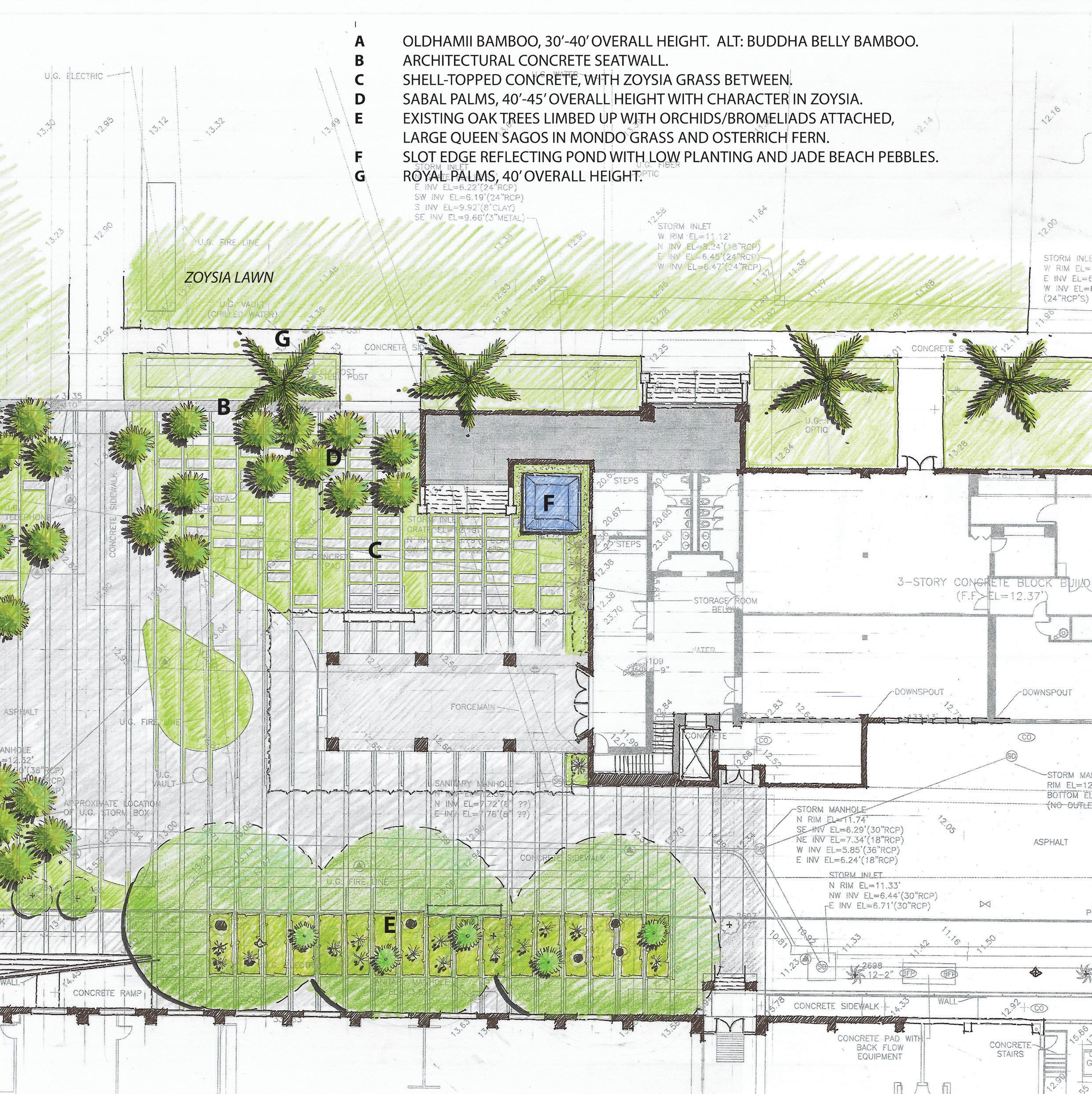 PROJECT SCOPE: Landscape Improvements featuring Luxury, Storm-Resilient Plantings, Hardscape, Landscape Lighting, Pedestrian and Event Plaza