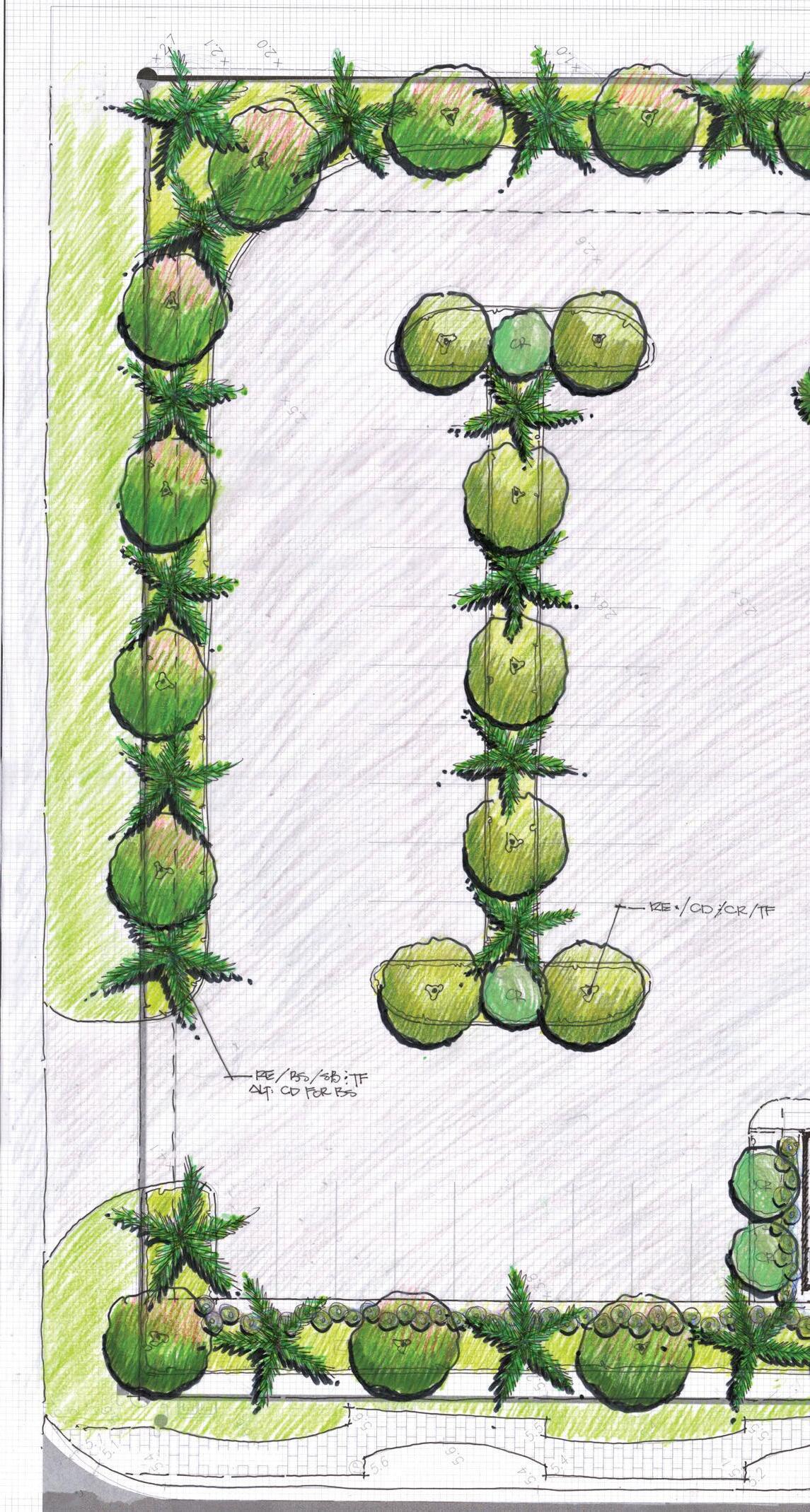 Schematic Design Rendering | Property Frontage Framed by Layered Plantings that Provide Privacy and Arrival Presence