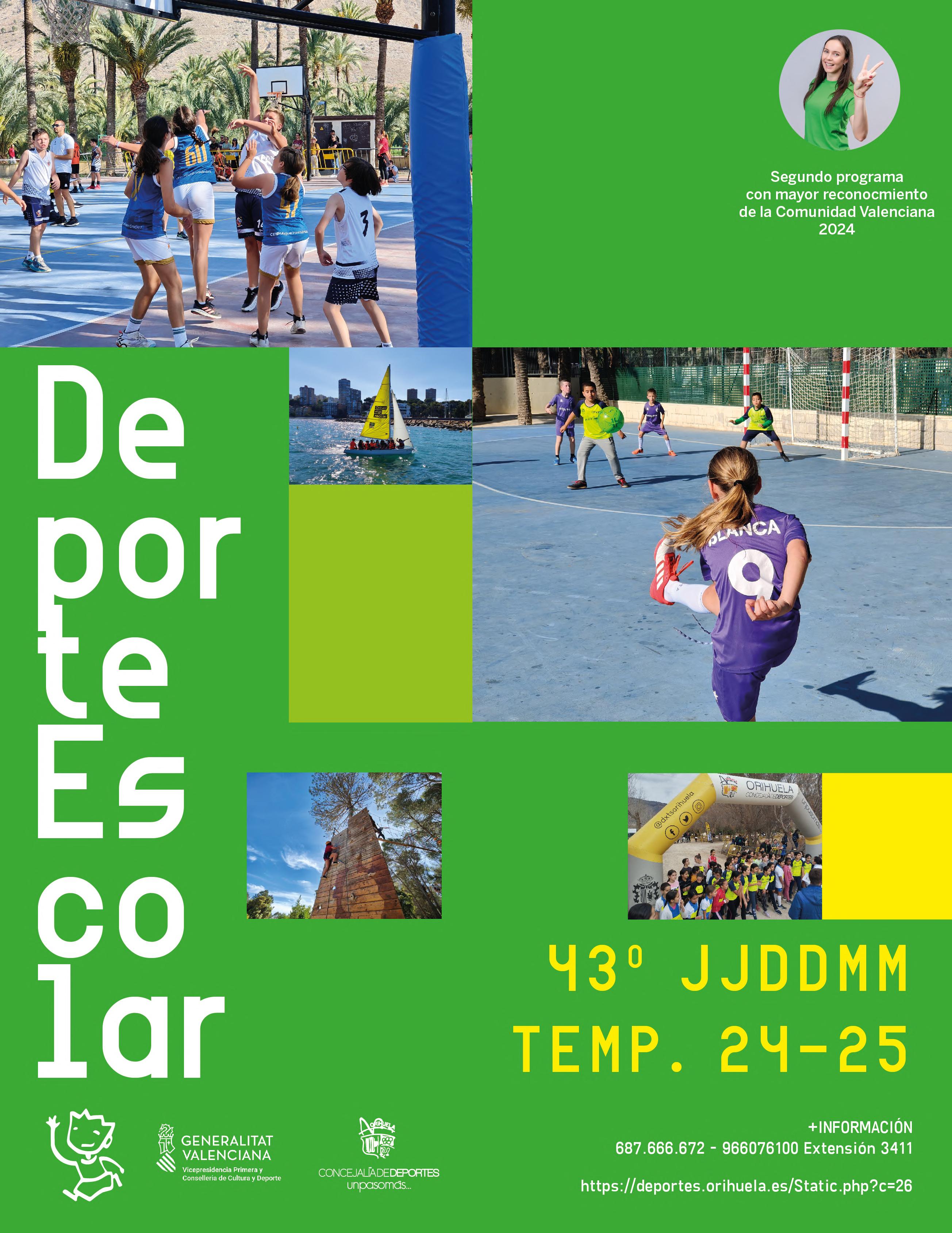 La Conselleria de Cultura y Deporte concede al programa de Deporte Escolar de Orihuela, 20.632,00 €, la segunda dotación más alta entre todas las solicitudes presentadas.