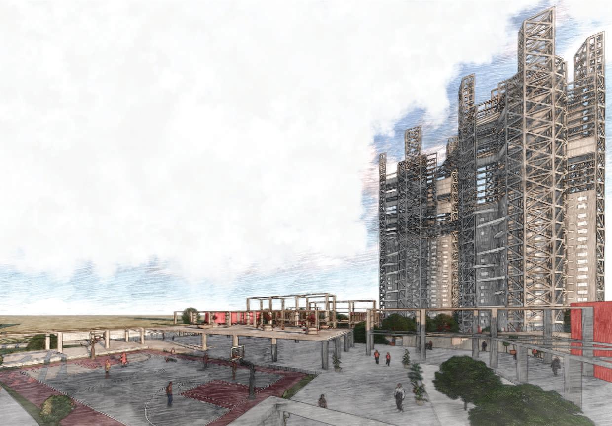 El crecimiento será una realidad en el futuro es por eso que en San Borja se debe tener un hito que marque la zona a traves de una intervención estructural y conexión de las 2 torres mediante puentes ademas de tener espacios públicos en la zona alta y baja de la estructura.