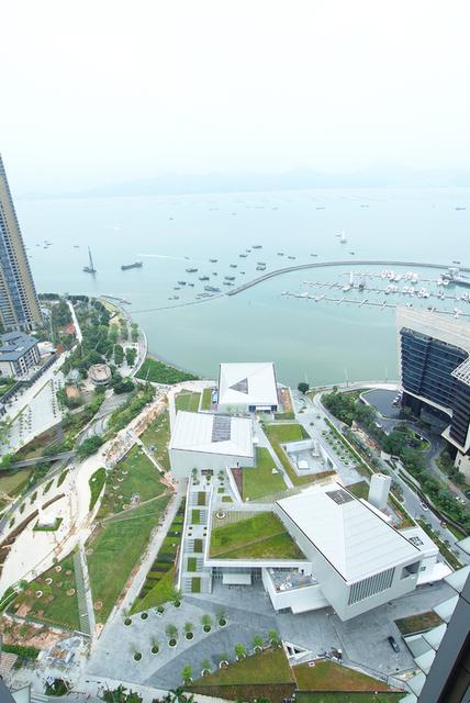 La Plaza de la Costa con vistas abiertas al mar consiste en escaleras en espiral que conducen a la sala de usos múltiples de 800 metros cuadrados.