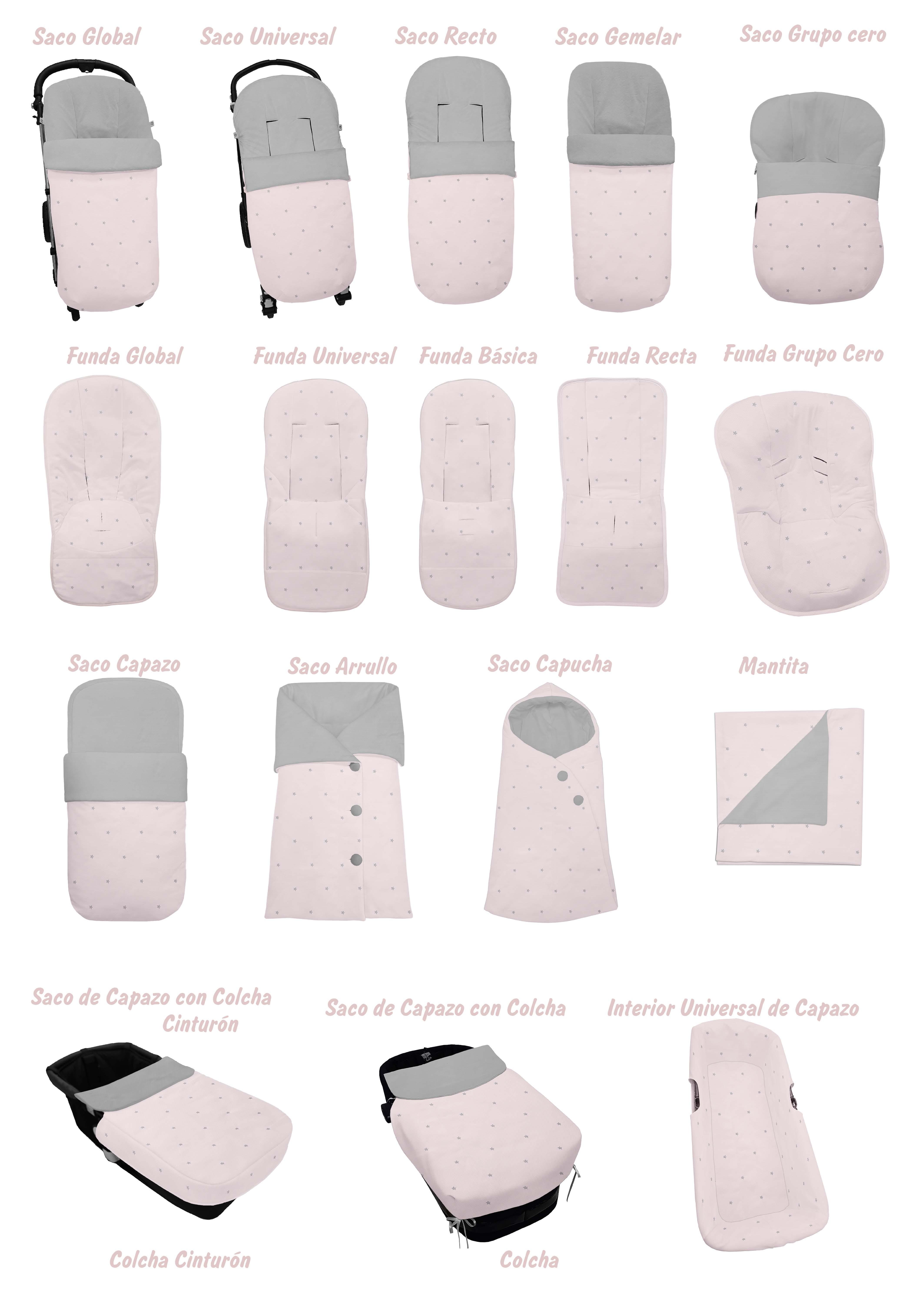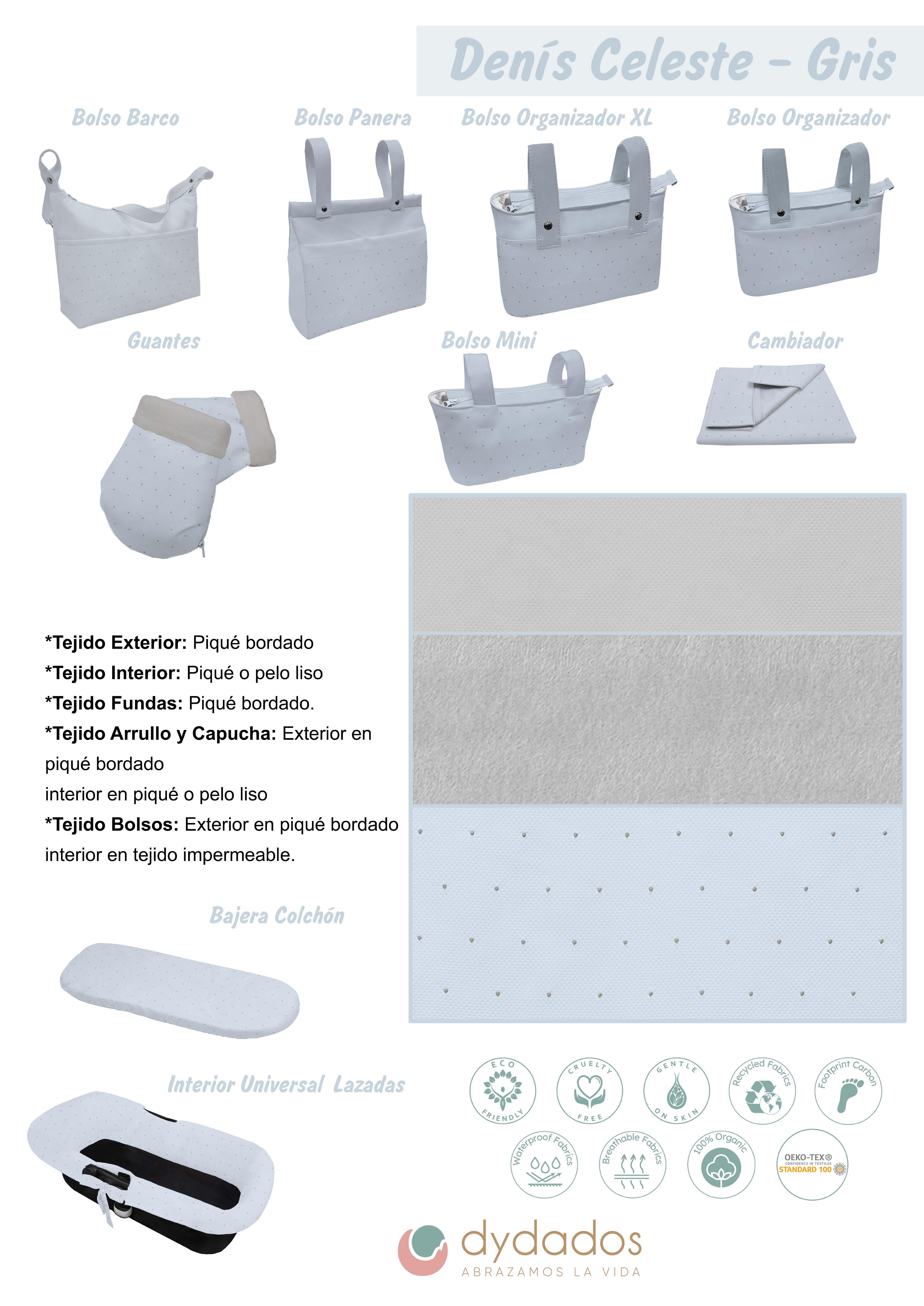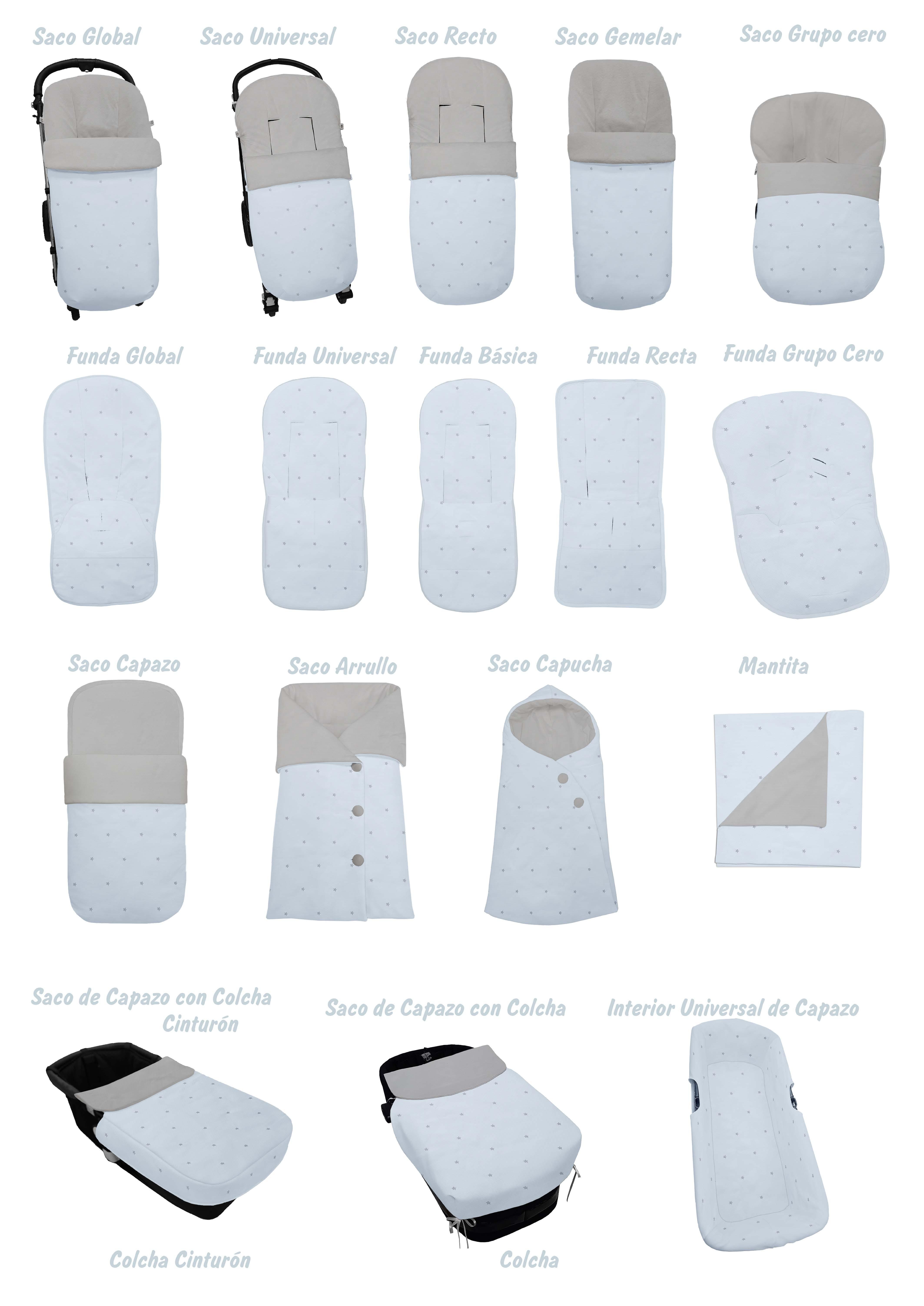 Conjuntos para capazo y silla en tejido de piqué. Un piqué de algodón muy agradable e ideal para los bebés.