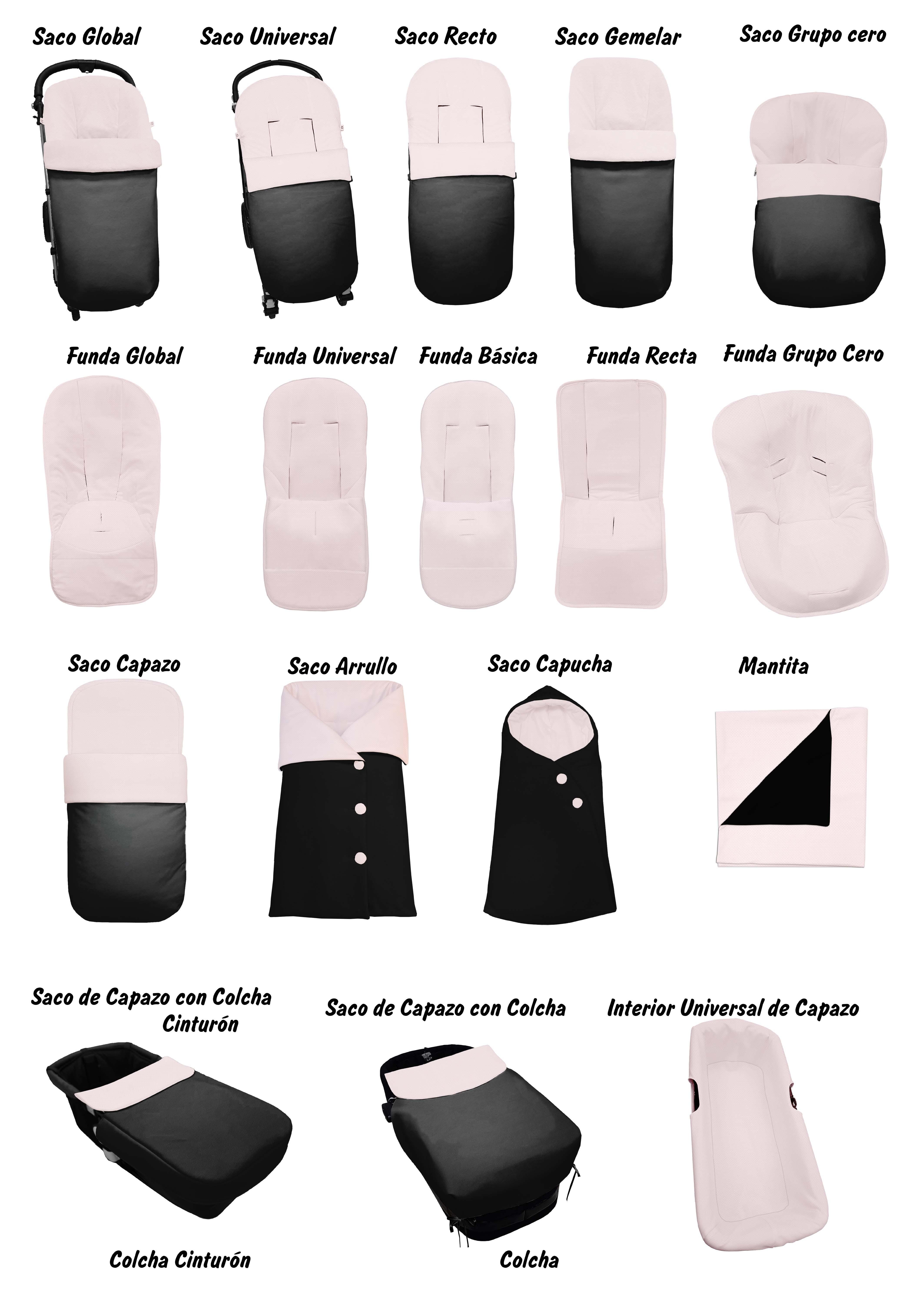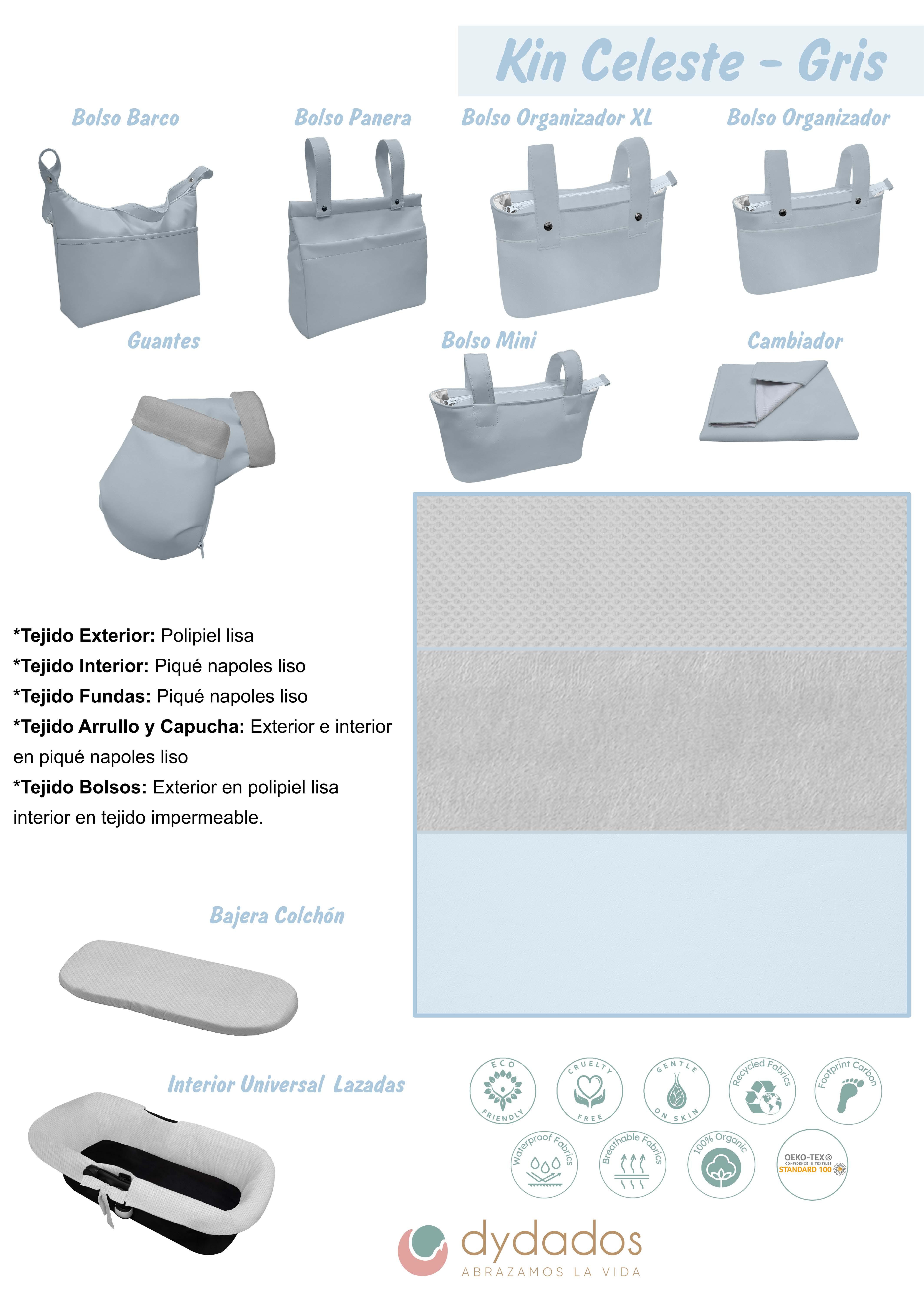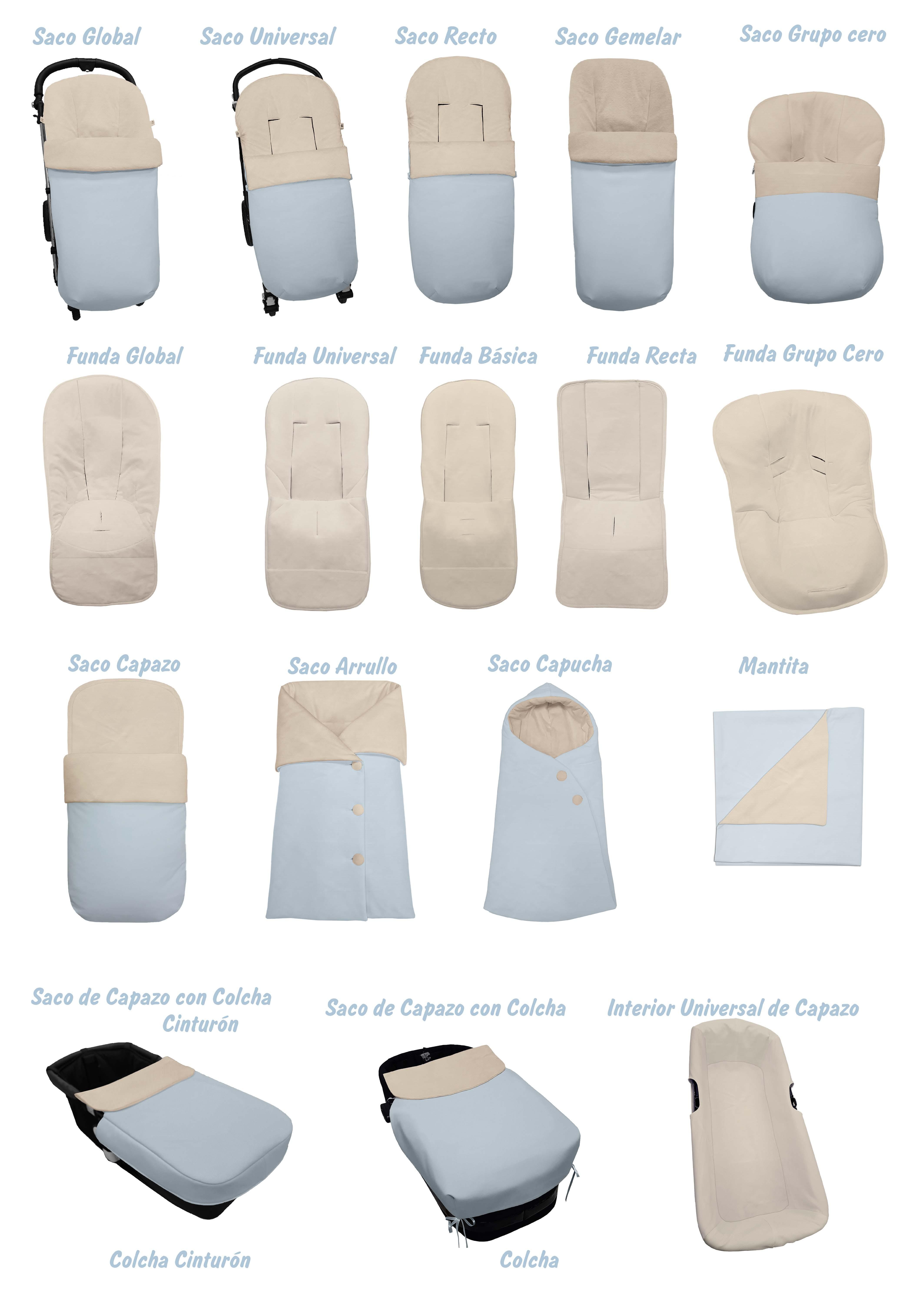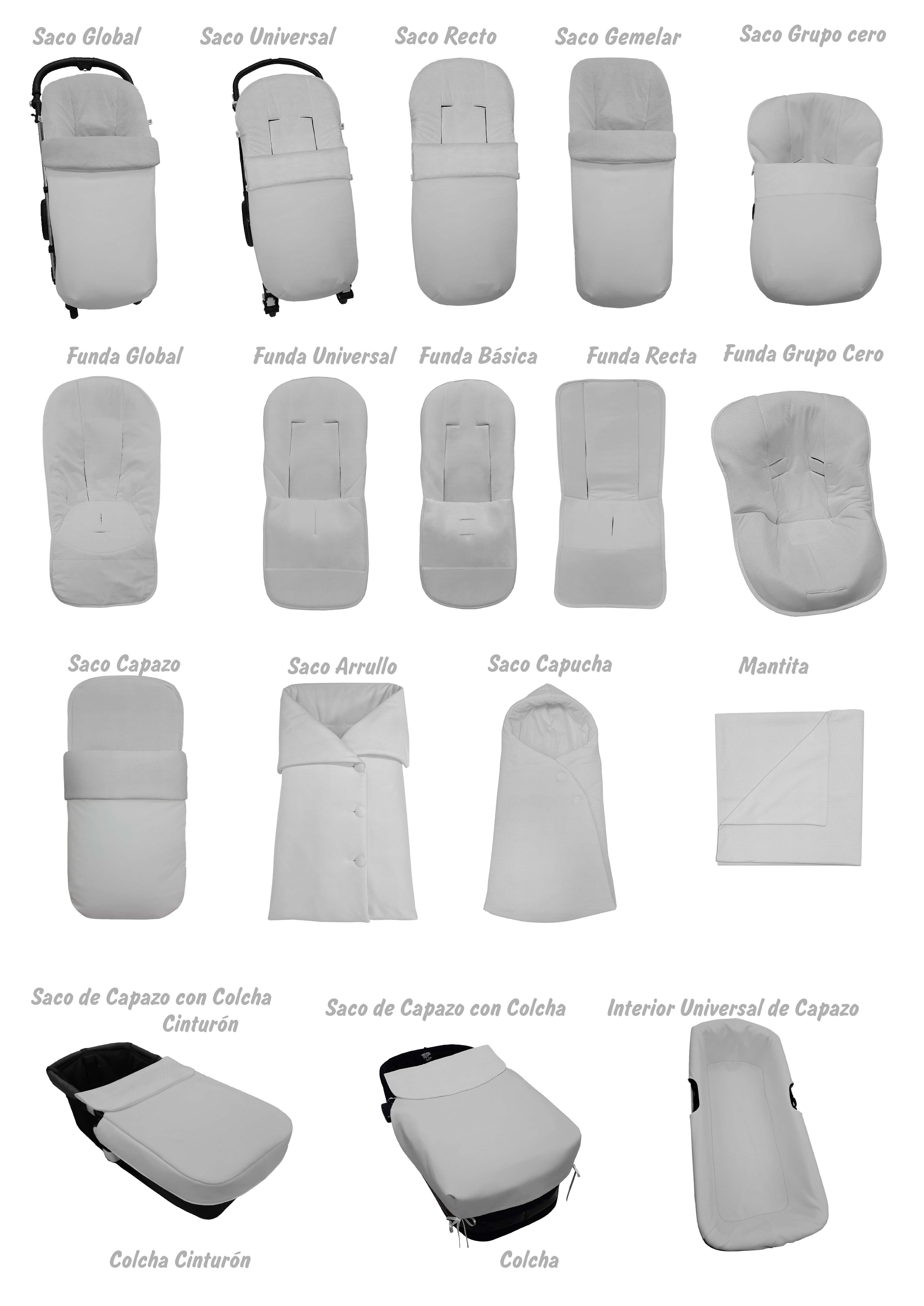 Conjuntos para capazo y silla en tejidos de polipiel lisa.