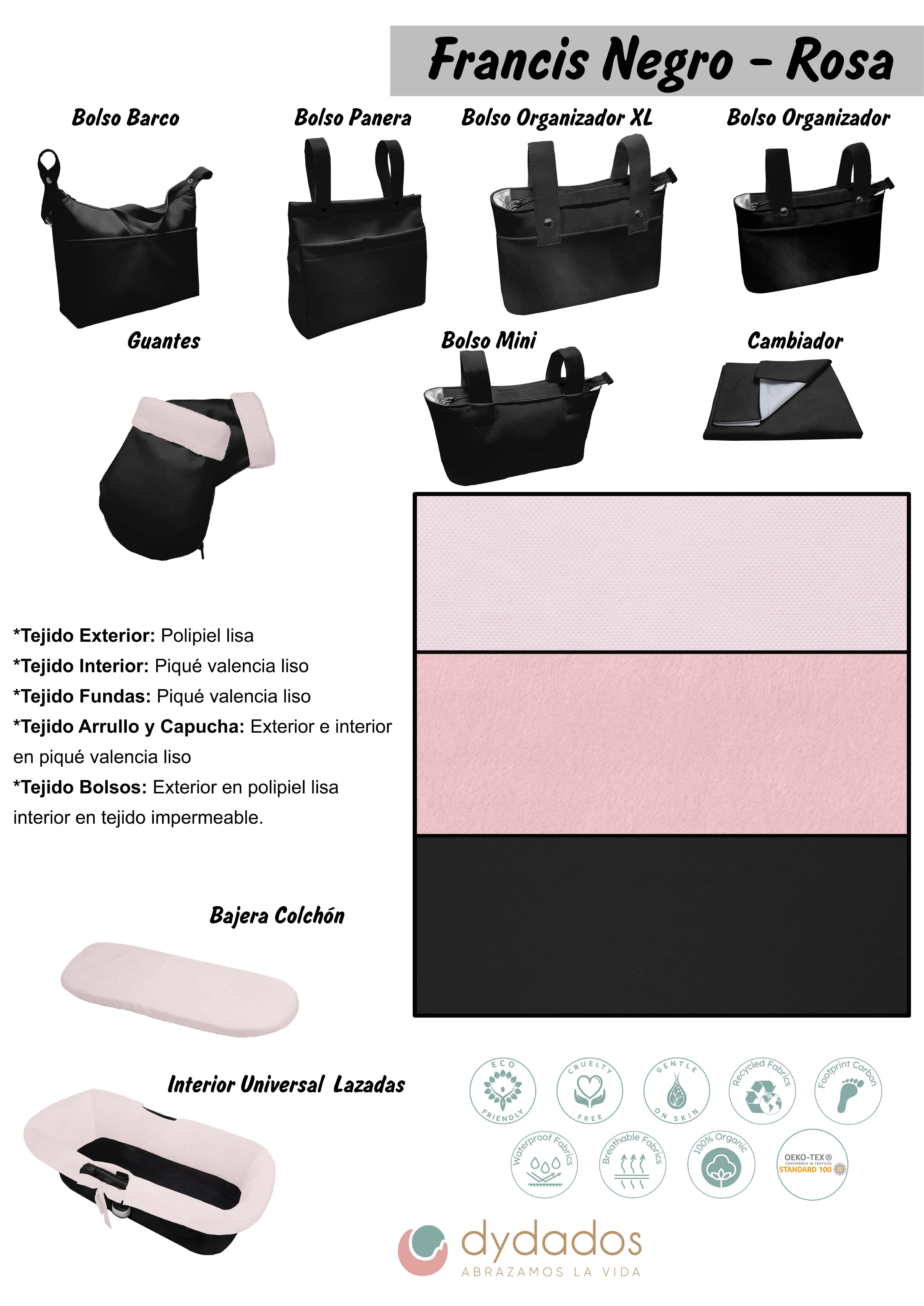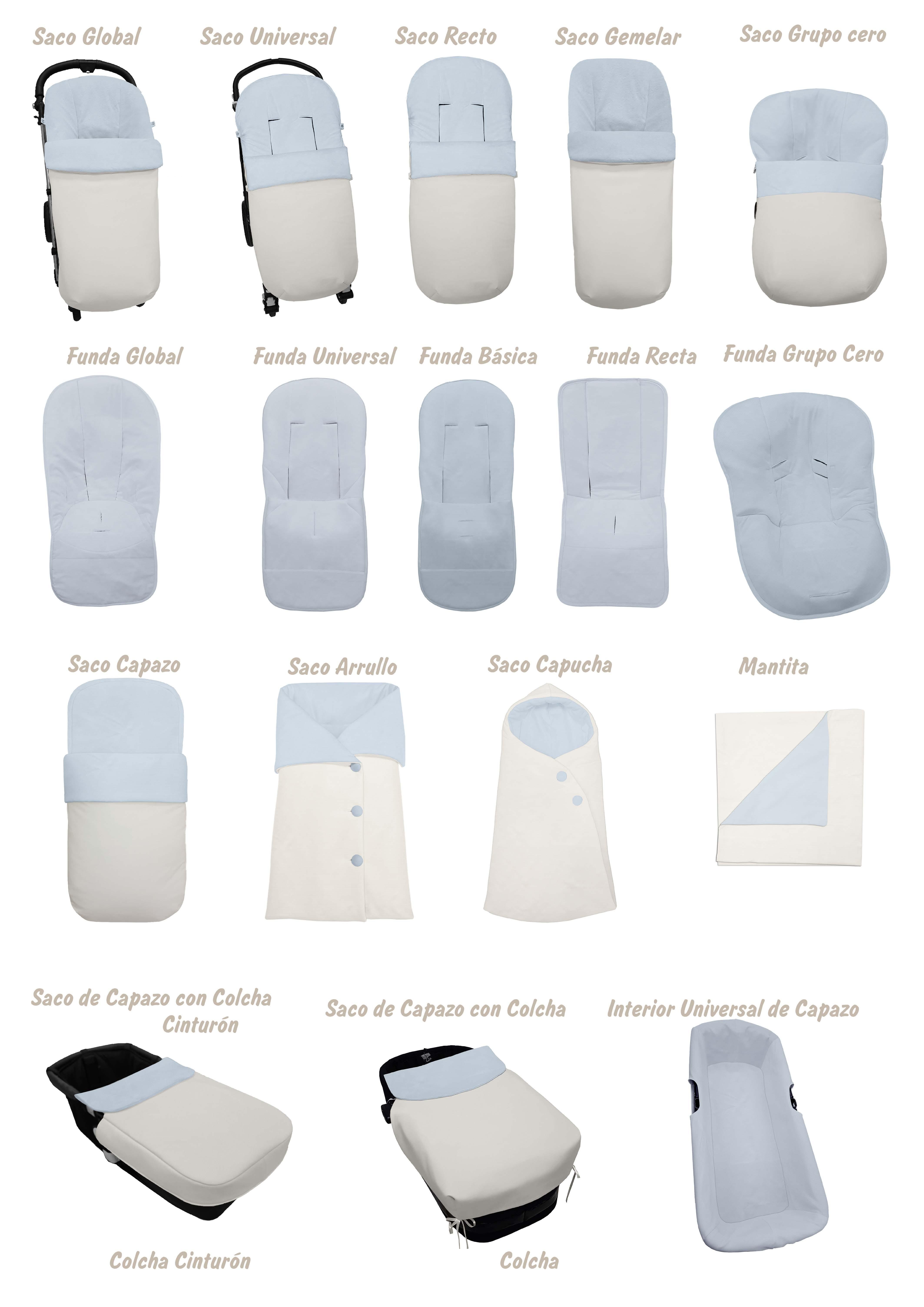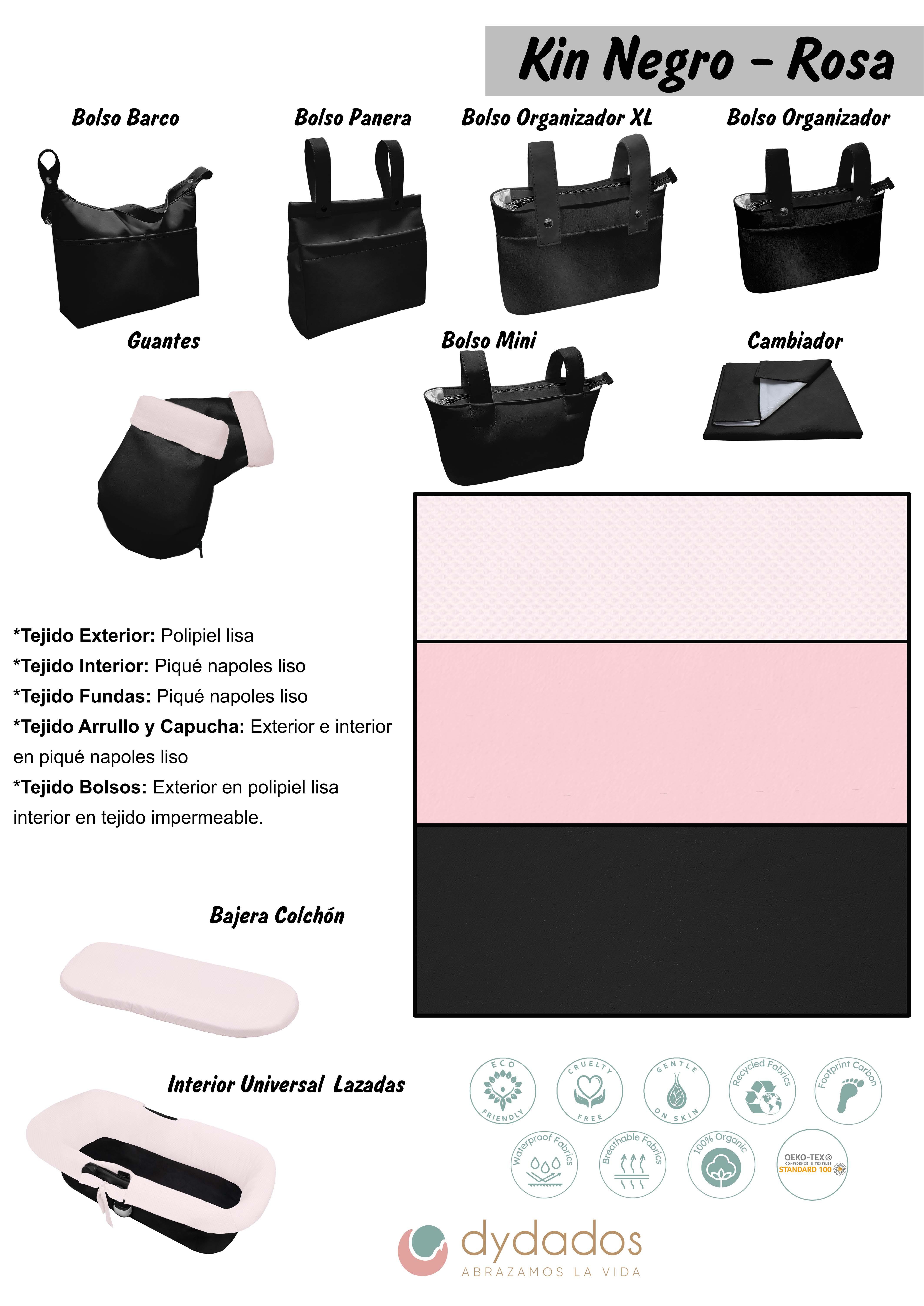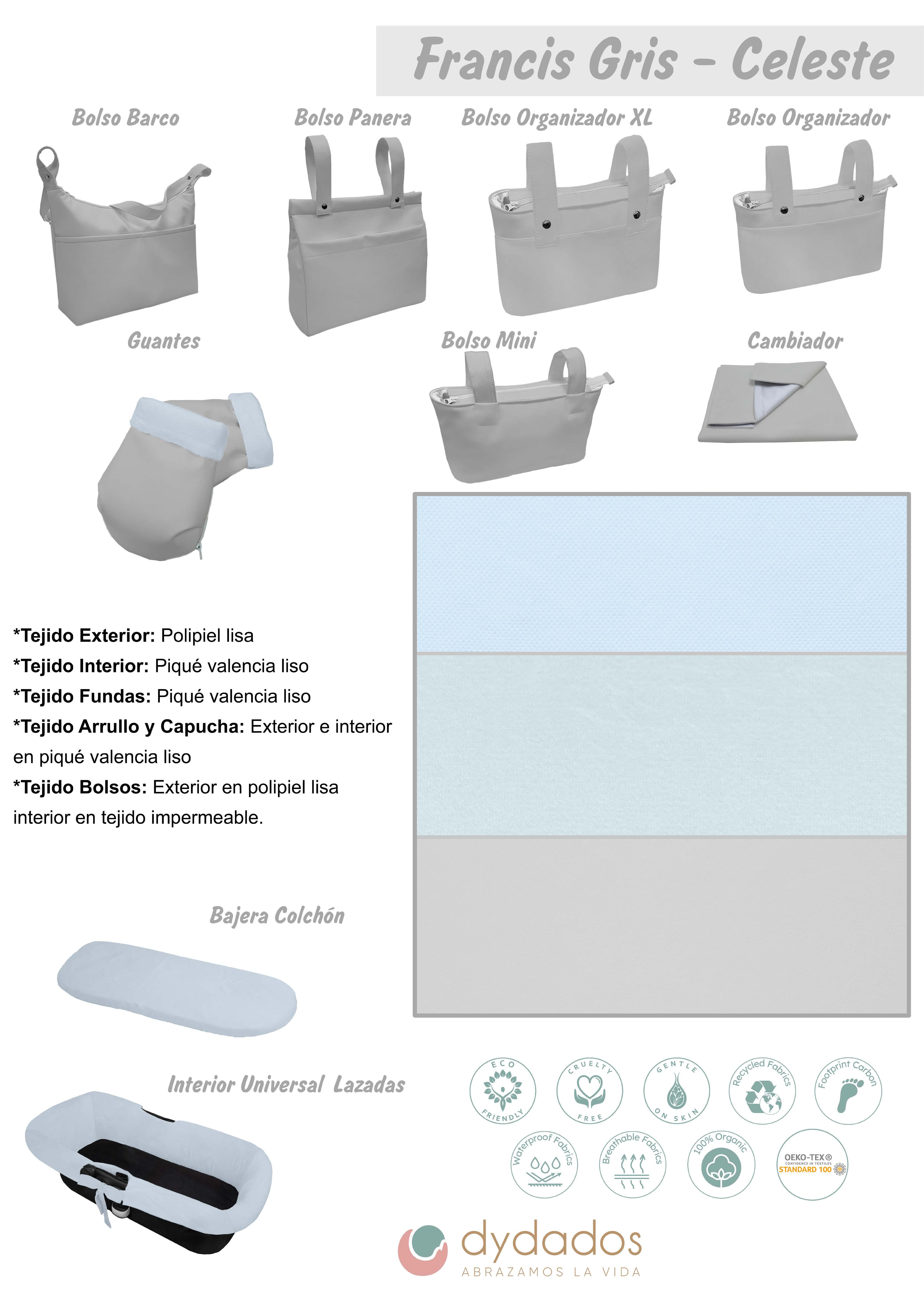 Conjuntos para capazo y silla en tejidos de polipiel lisa.