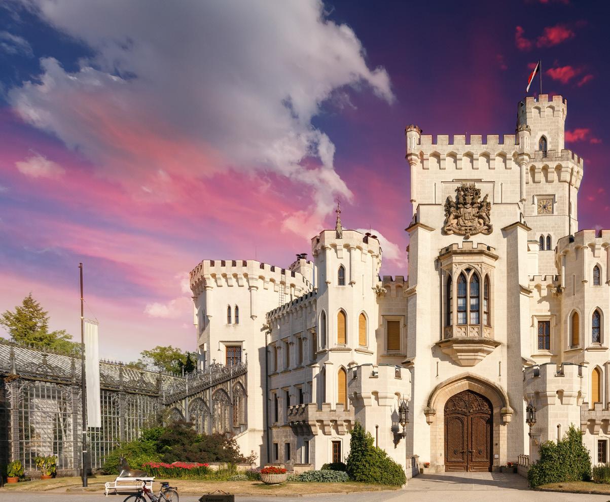 El Castillo de Hluboká, ubicado en la región de Bohemia Meridional de la República Checa, es uno de los monumentos históricos más impresionantes y mejor conservados del país. Construido originalmente en el siglo XIII como una fortaleza gótica, el castillo sufrió varias renovaciones, reflejando diversos estilos arquitectónicos a lo largo de los siglos. Su aspecto actual, influenciado por el Castillo de Windsor de Inglaterra, se debe a una importante reconstrucción a mediados del siglo XIX bajo la dirección de la familia Schwarzenberg, propietaria de la finca desde 1661. El Castillo de Hluboká fue remodelado al estilo neogótico romántico, con intrincadas fachadas blancas, torretas y almenas. El castillo está rodeado de amplios y cuidados jardines, con zonas ajardinadas de estilo inglés y terrazas de estilo barroco, que le confieren un encanto de
