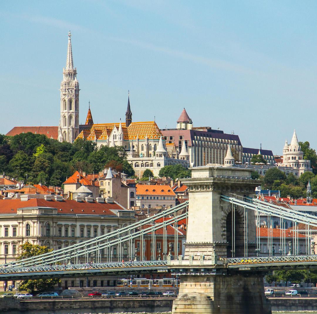 y unificando su identidad. Diseñado por el ingeniero inglés William Tierney Clark y construido por el ingeniero escocés Adam Clark, el puente colgante fue una maravilla de la ingeniería del siglo XIX. Sus enormes leones de piedra, que custodian cada extremo, se han convertido en un icono por derecho propio. El Puente de las Cadenas es más que un simple cruce; es un emblema cultural que ha presenciado revoluciones, guerras y reconstrucciones. Gravemente dañado durante la Segunda Guerra Mundial, fue reconstruido y reabierto en 1949, exactamente 100 años después de su finalización. Hoy en día, es un lugar predilecto para los fotógrafos, ofreciendo impresionantes vistas del Danubio, especialmente al amanecer y al atardecer. Juntos, el río Danubio y el Puente de las Cadenas capturan la esencia de Budapest, una ciudad donde convergen la historia, la belleza y la resiliencia.