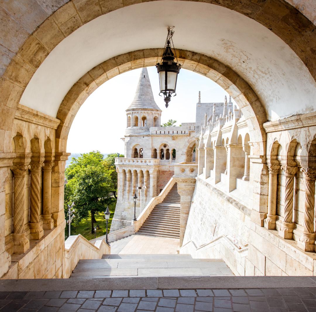 sentando las bases de la Hungría moderna. Hoy en día, el Bastión de los Pescadores es una de las atracciones más visitadas de Budapest, atrayendo turistas tanto por su arquitectura como por sus vistas panorámicas. Desde sus terrazas, los visitantes pueden admirar el Parlamento húngaro, la Isla Margarita y las ondulantes curvas del Danubio. Justo al lado del bastión se alza la igualmente famosa Iglesia de Matías, una impresionante estructura gótica que realza el encanto histórico de la zona. La entrada a las terrazas inferiores es gratuita, mientras que se aplica una pequeña tarifa para acceder a los niveles superiores durante la temporada alta de turismo. Ya sea al amanecer, bajo la suave luz dorada, o por la noche, cuando el bastión está bellamente iluminado, el Bastión de los Pescadores ofrece una experiencia inolvidable: una combinación perfecta de historia, leyenda y paisajes impresionantes.