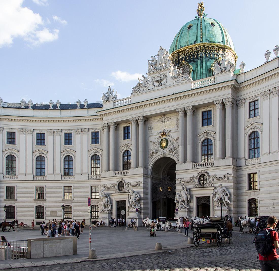 ocuparon el emperador Francisco José y la emperatriz Isabel, conocida como “Sisi”. El Museo Sisi ofrece una mirada íntima a la vida de la emperatriz, exhibiendo objetos personales y arrojando luz sobre su complejo legado. Otro punto destacado es la Colección Imperial de Plata, que exhibe exquisitos servicios de mesa y vajilla ceremonial utilizados durante los banquetes imperiales. Además de sus museos, el Hofburg alberga la Escuela Española de Equitación, donde los mundialmente famosos sementales Lipizzanos realizan elegantes pruebas de doma, y la Biblioteca Nacional de Austria, una obra maestra del barroco por derecho propio. Ubicado en el centro histórico de Viena, el Palacio de Hofburg no es solo un monumento, sino un símbolo viviente de la historia, el arte y el patrimonio cultural de Austria. Visitarlo ofrece un viaje a través de siglos de poder imperial, elegancia y tradición, lo que lo convierte en una parada imprescindible en cualquier viaje a Austria.