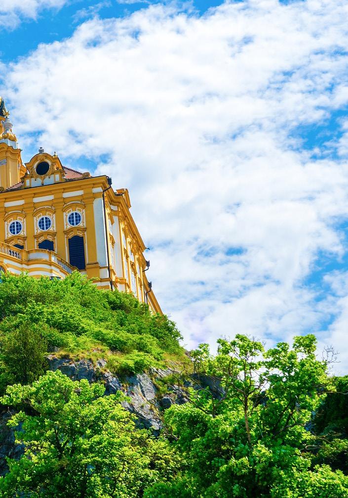 Abadía de Melk, un tesoro de más de 100.000 volúmenes, que incluye manuscritos medievales y libros impresos antiguos. El fresco de su techo celebra la búsqueda del conocimiento como una vocación divina, testimonio de la tradición benedictina de la erudición. En el exterior, los jardines en terrazas y los miradores panorámicos ofrecen vistas panorámicas del Valle de Wachau, declarado Patrimonio de la Humanidad por la UNESCO, famoso por sus viñedos y paisajes fluviales. Los visitantes suelen combinar la visita a la abadía con cruceros por el Danubio o paseos en bicicleta por el valle. Admirada por su arte, historia o legado espiritual, la Abadía de Melk se erige como un símbolo imponente de la riqueza cultural de Austria, ofreciendo una experiencia inolvidable a los viajeros que buscan belleza e inspiración.