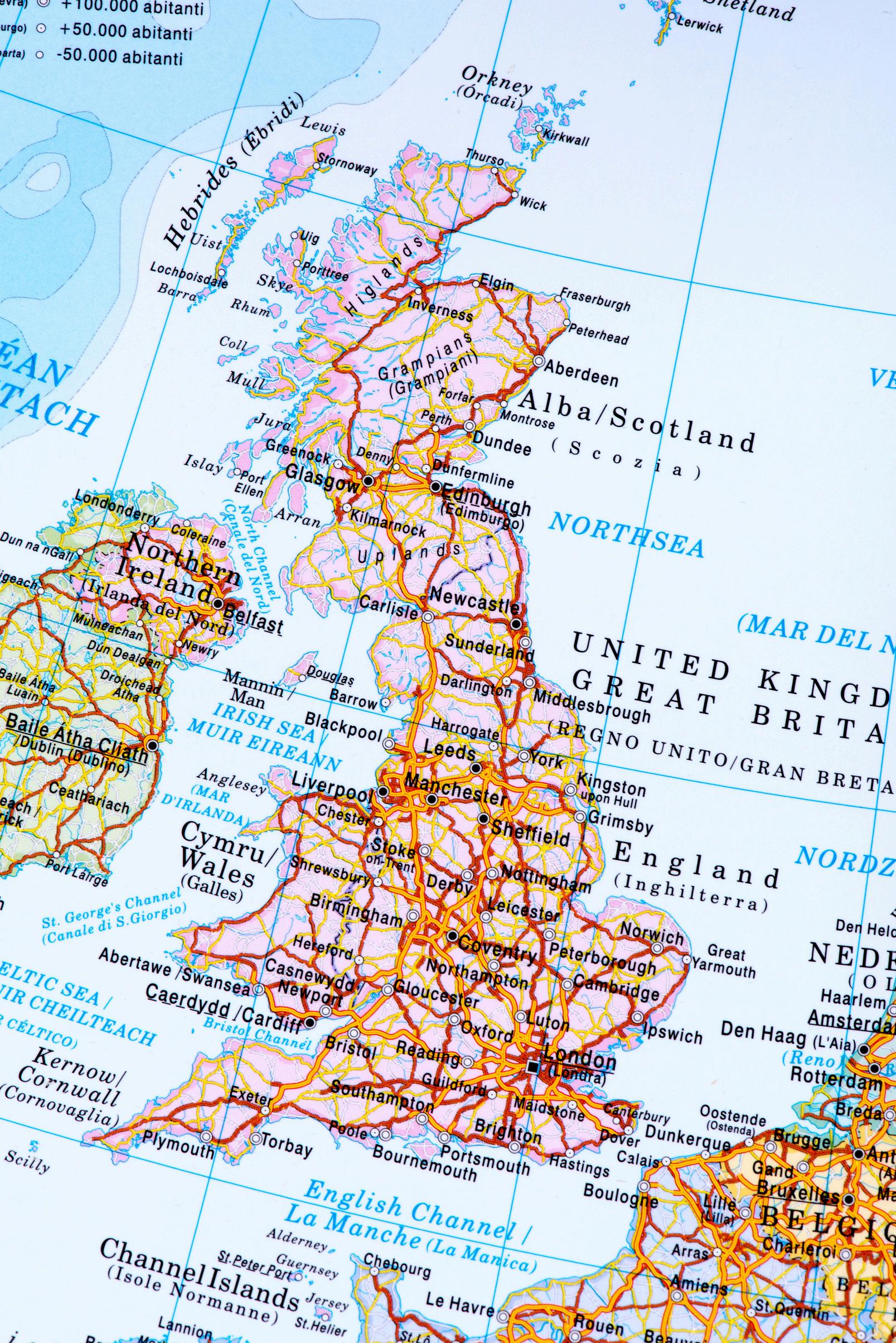 Irlanda, Escocia e Inglaterra funcionan con un voltaje de suministro de 230 V y utilizan enchufes de tres clavijas (tipo G).