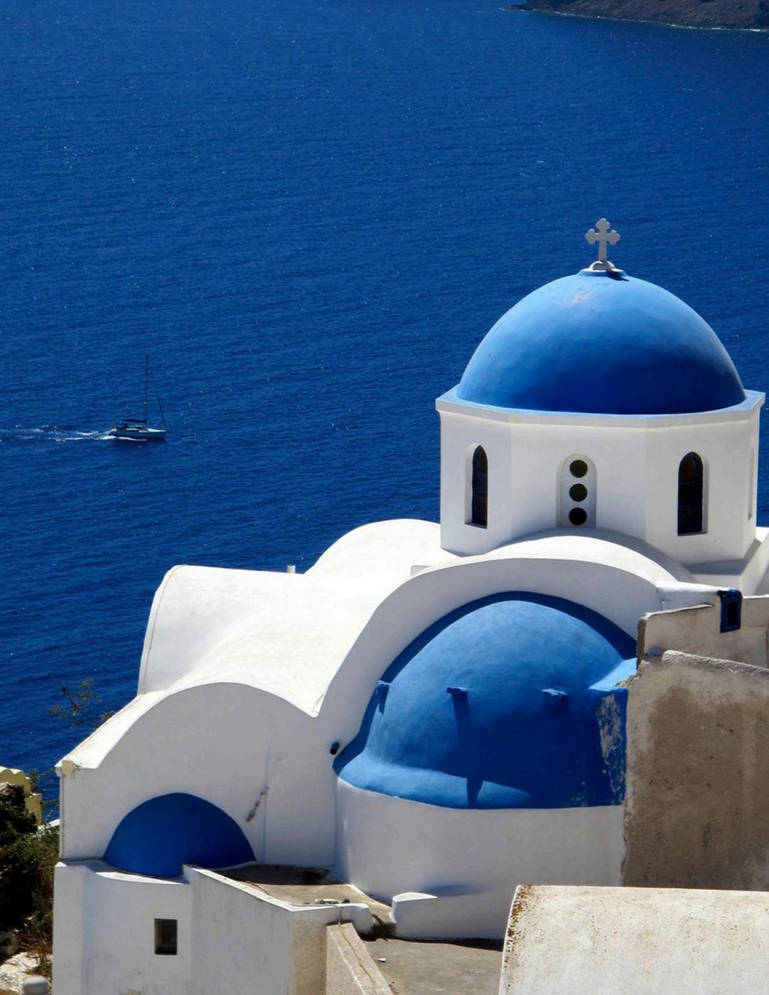 Santorini es una de las islas más famosas de Grecia, conocida por sus impresionantes edificios encalados, iglesias con cúpulas azules y espectaculares vistas de la caldera. Formada por una erupción volcánica, la isla presenta características geológicas únicas que incluyen imponentes acantilados y playas de arena negra. Las principales ciudades de Fira y Oia se encuentran en el borde de la caldera, ofreciendo algunas de las puestas de sol más impresionantes del mundo.