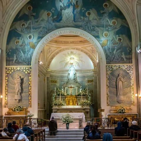 La Capilla de la Medalla Milagrosa en París es el lugar donde la Virgen María se apareció a Santa Catalina Labouré en 1830. María le encargó a Catalina la creación de la Medalla Milagrosa, un sacramental que ha otorgado innumerables gracias y bendiciones a quienes la llevan con fe. La capilla sigue siendo un lugar de peregrinación popular, especialmente para quienes buscan la intercesión de María.