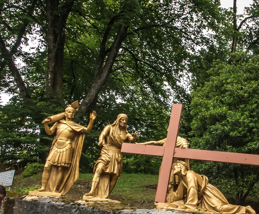 El Vía Crucis de Lourdes es una serie de esculturas de tamaño natural, dispuestas a lo largo de una empinada ladera, que representan las últimas horas de la Pasión de Cristo. Este camino devocional permite a los peregrinos meditar sobre el sufrimiento y la muerte de Jesús mientras ascienden la colina, siguiendo sus pasos hacia el sacrificio supremo de amor.