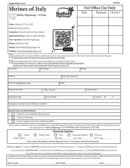 You will also receive a Pilgrimage Preparation Guide filled with information preparing you for your journey such as what to pack, what to expect, how much money to bring, etc.