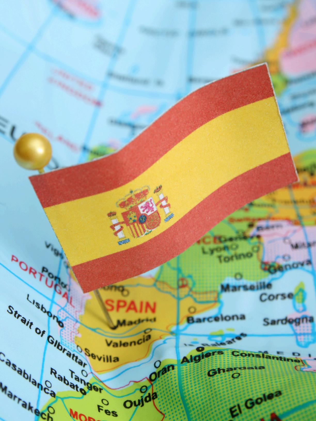 Spain operate on a 230V supply voltage and uses rounded, two-prong plugs.