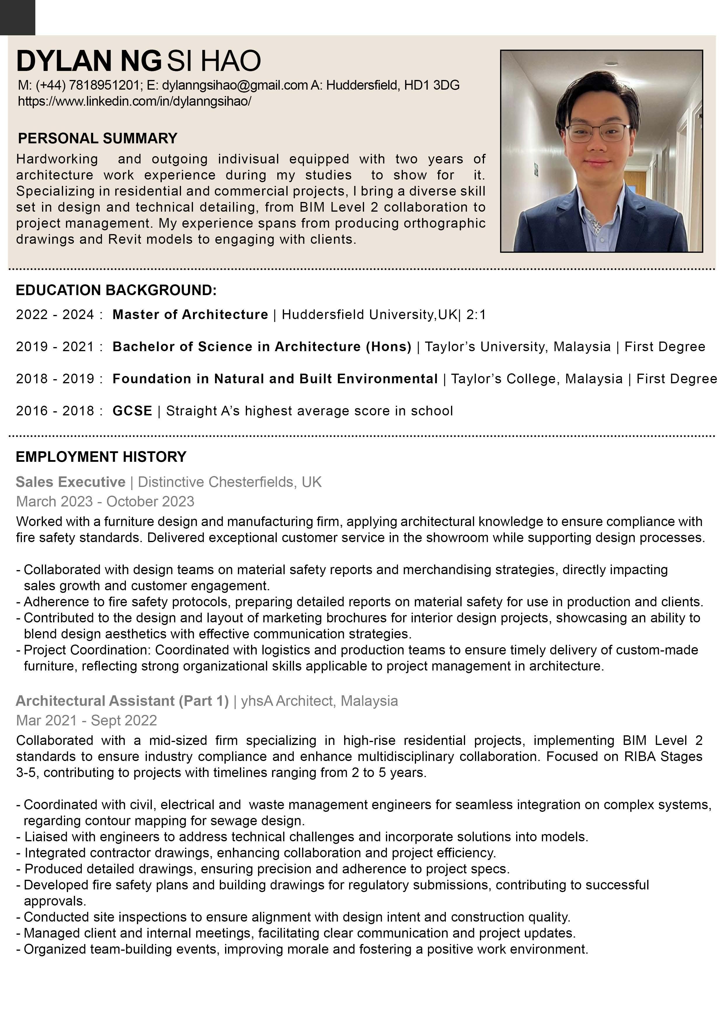 I am Dylan Ng. I have recently completed my Masters of Architecture in University of Huddersfield, with a Second Class Upper.