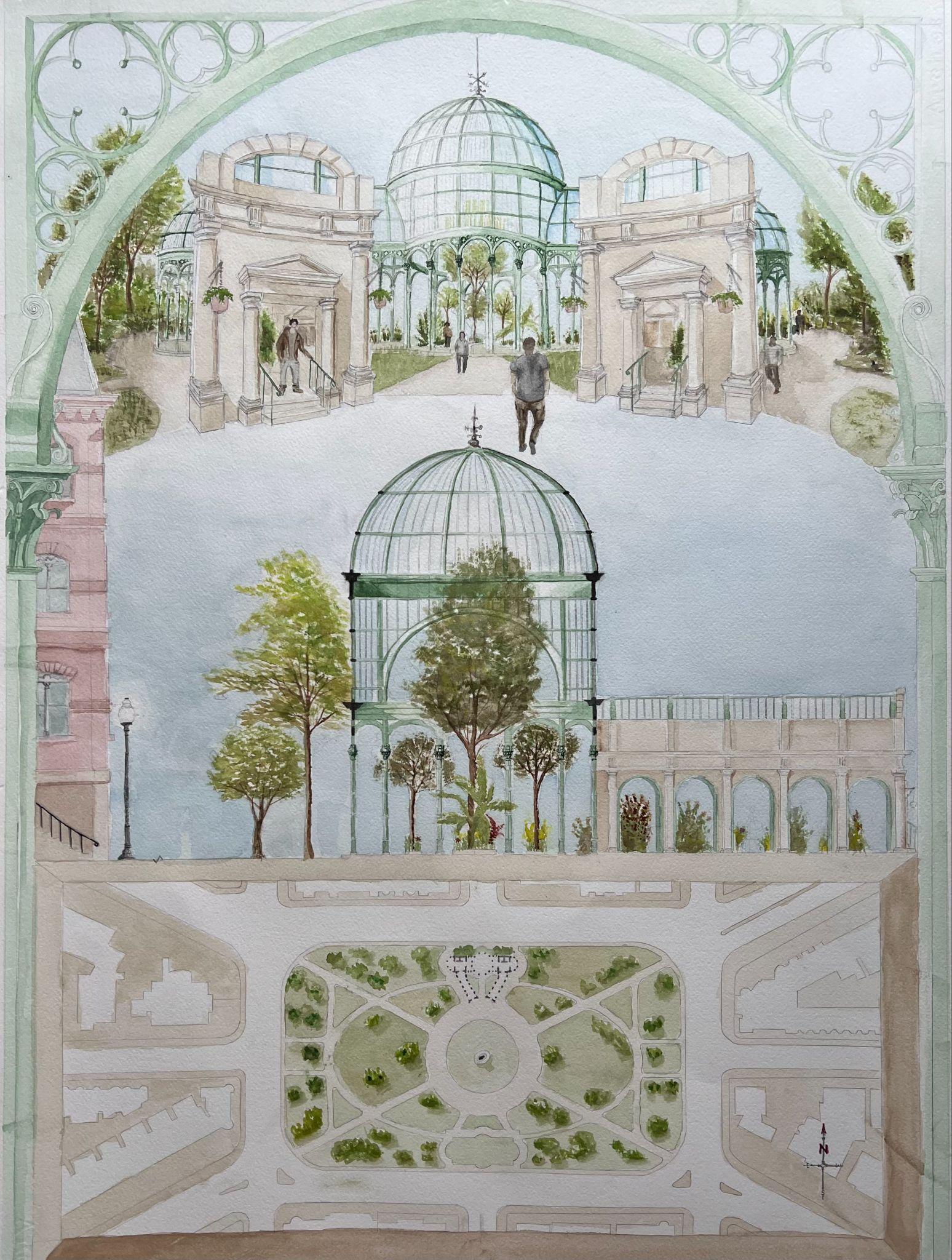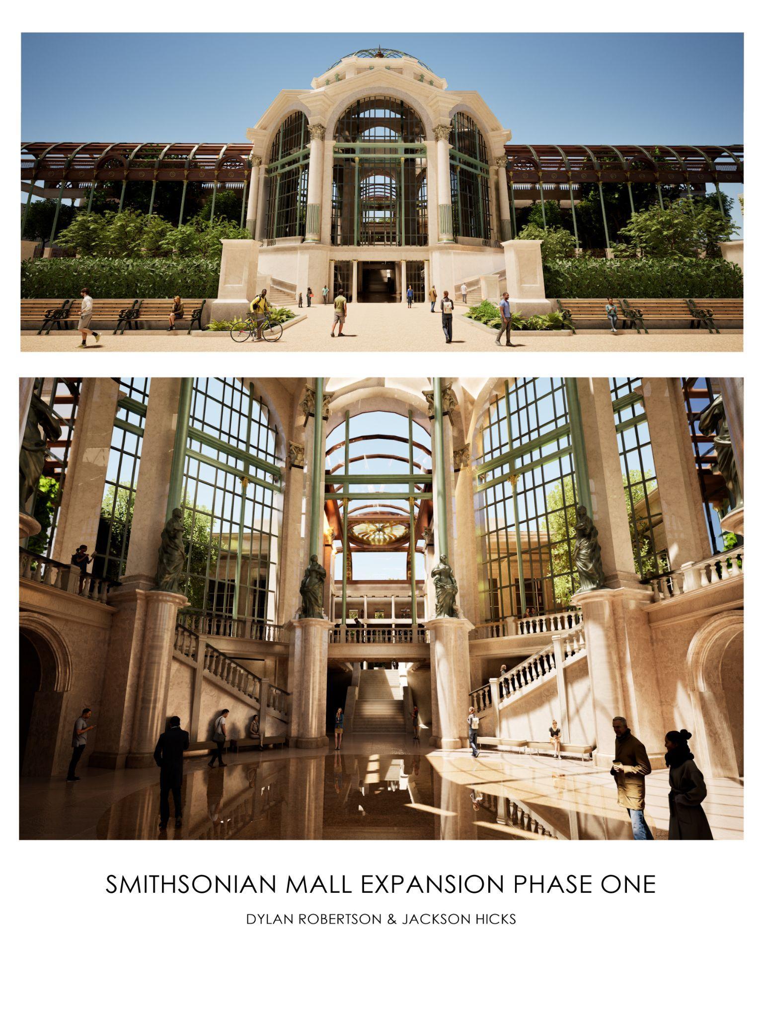 Smithsonian Museum For The American Woman And an Adjacent Mixed Use Development. Replacing James V. Forrestal Building, South of Smithsonian Castle as counter proposal to plans to develop the tidal basin for future museum projects. Includes pedestrian public space facing the museum, the museum proper, smaller public space behind the museum, as well as, two apartment buildings with commercial space onthegroundfloor.