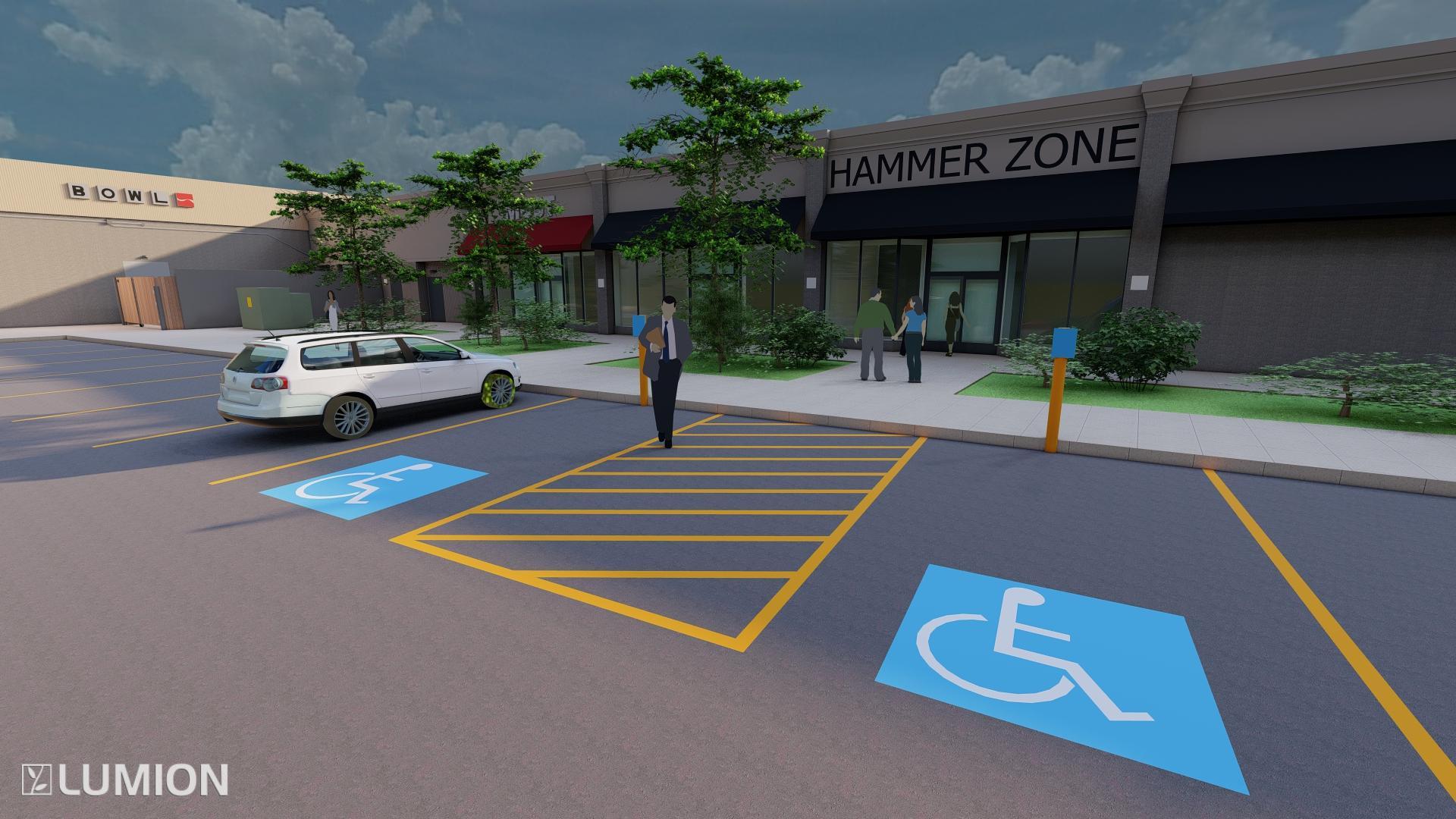 2: The Fairfax Circle Shopping Center remodeled facade following fire damage. This project included the addition of new storefronts and surrounding details.
