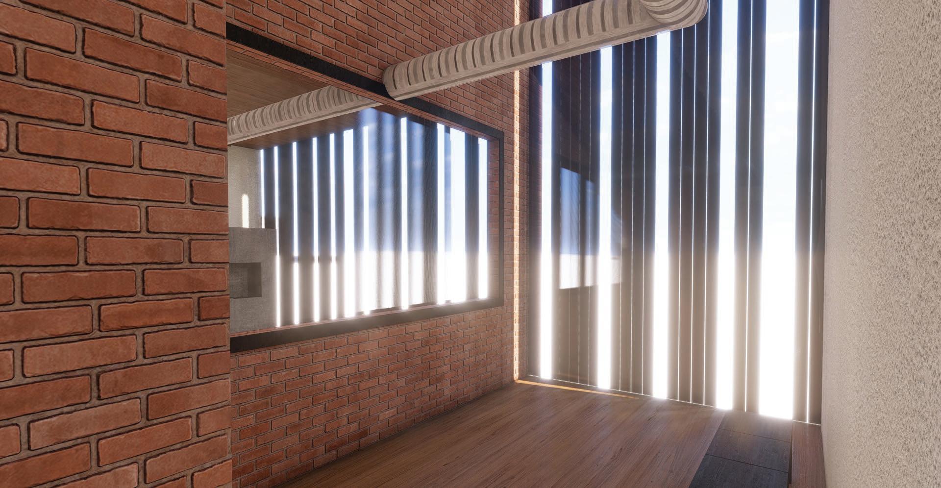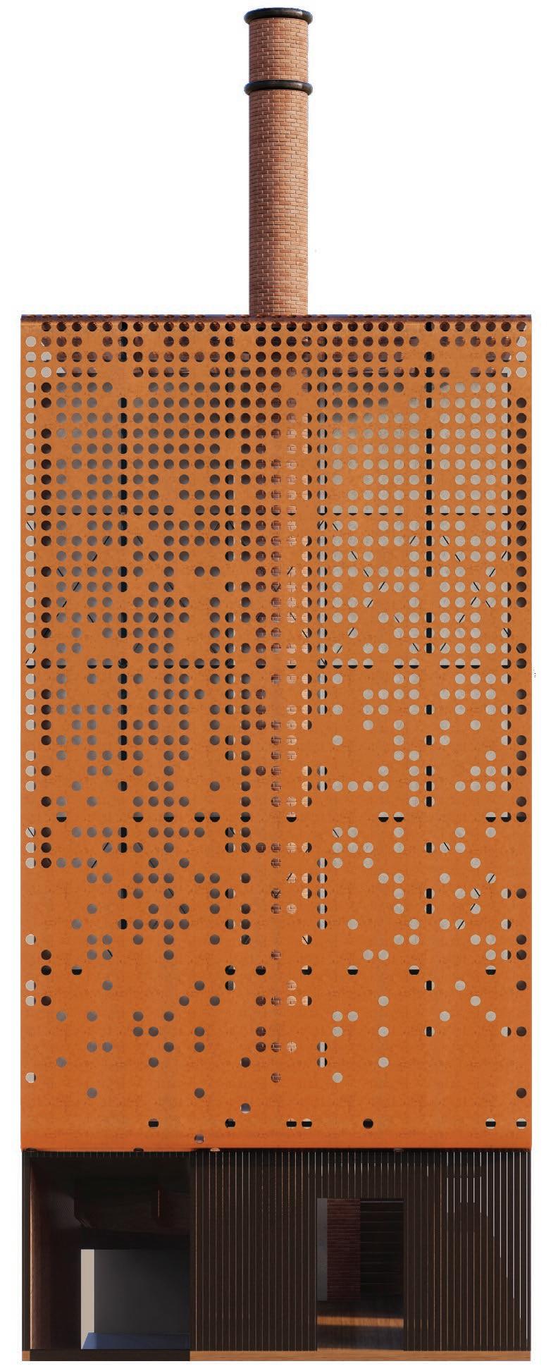 The first of three important architectural features of the building, the chimney stack is an inhenrent part of a crematorium. It provides essential function in the form of ventilation for the building’s cremation capabilities, however also starts to convey a sense of circulatory narrative, space and movement that the passed occupys. As a monument in and of itself, it starts to prescribe a design language to the rest of the building, with much of its form reflective of its geometry.
