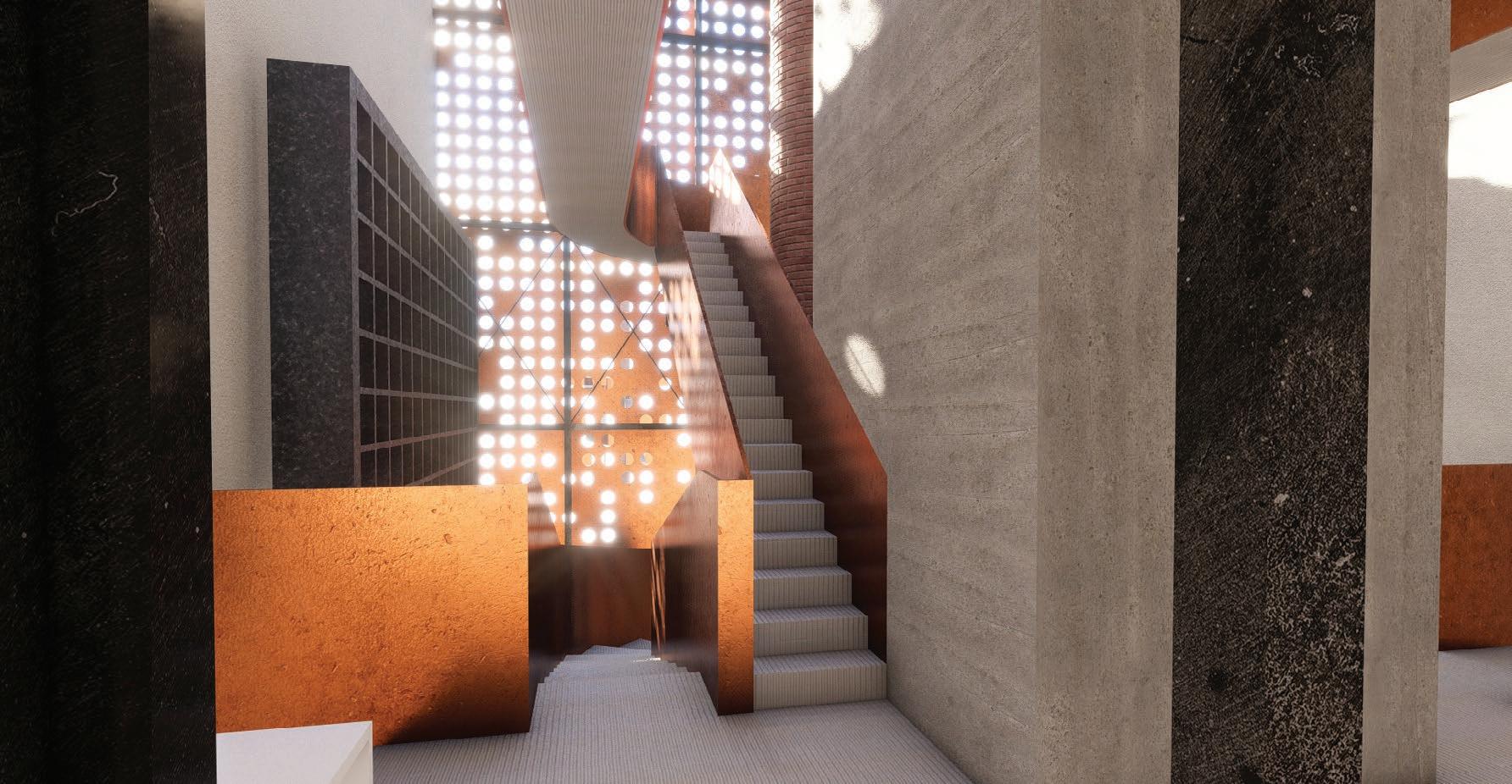 This feature marks the end of the conceptual narrative for all who enter the building, both the passed and living. Jewellery makers have the opportunity to work in conjunction with families to produce bespoke metal urns that represent the memory of someone who is passed. As such, the columbarium becomes a wall with a mosaic of individuality, stretching across the project’s conceptual framework.