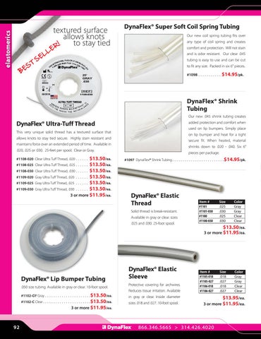 DynaFlex® Elastic Thread Solid thread is break-resistant. Available in gray or clear. sizes .025 and .030. 25-foot spool.