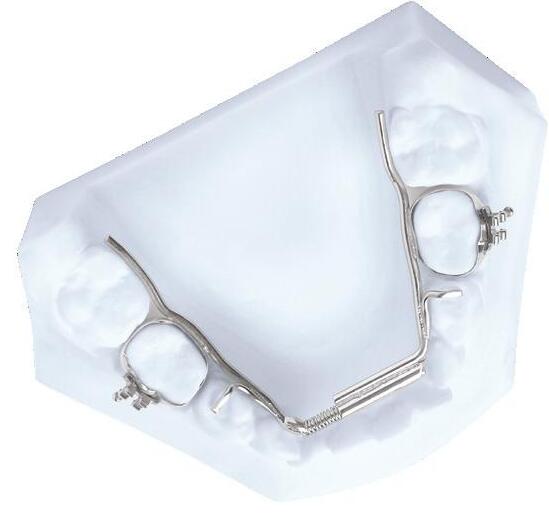This appliance allows for the development of the maxillary arch by utilizing active helical springs The springs can be activated to provide overall arch form improvement, or to address either anterior or posterior expansion needs The design of the appliance also allows for improvement of molar rotation
