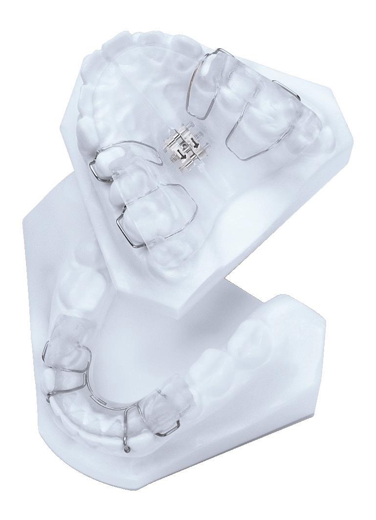 This fixed design is both tissue and tooth-borne to provide orthopedic and orthodontic changes