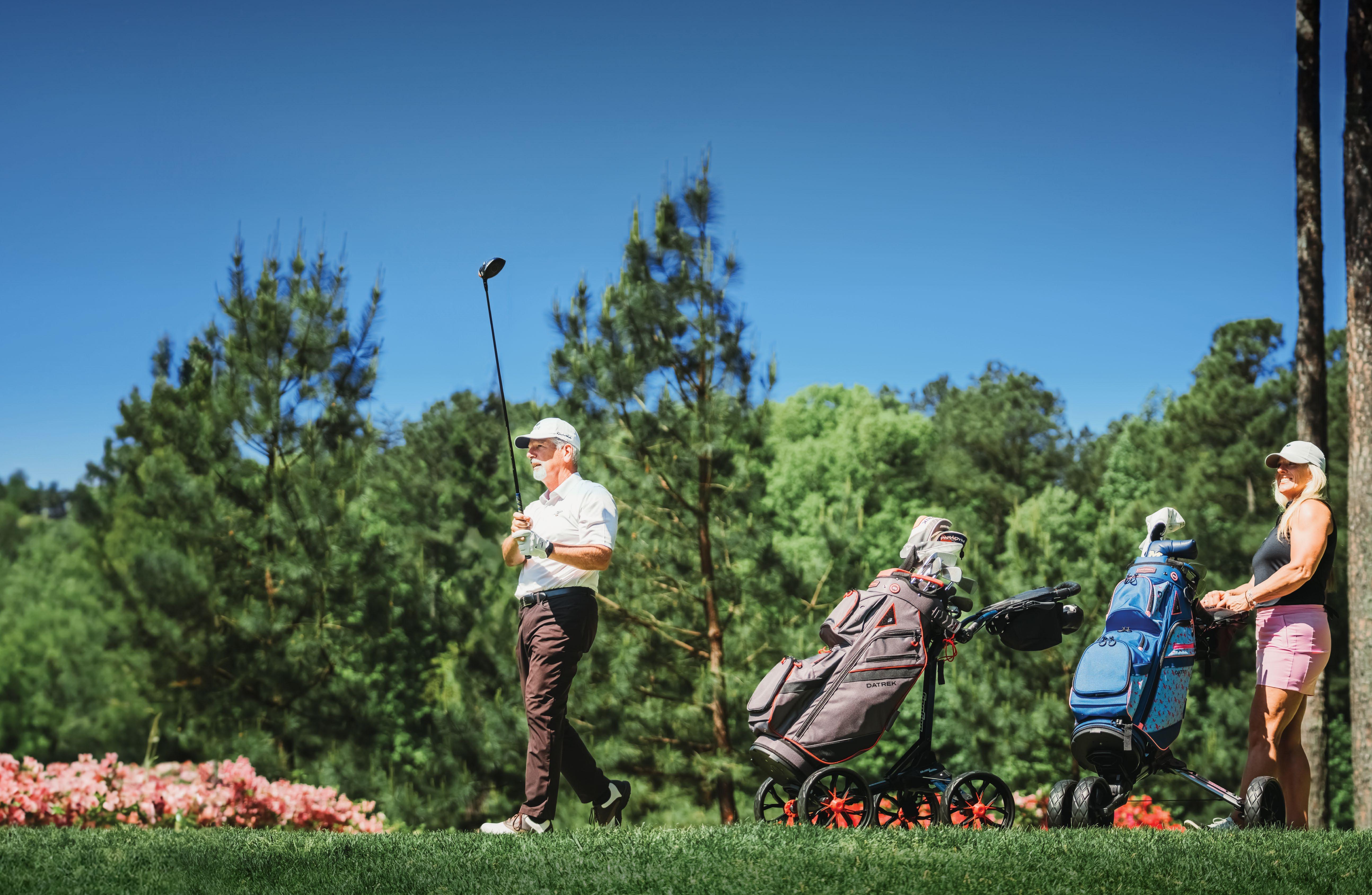 • Generous storage capacity with an extra-deep scorecard console, large accessory bag, integrated beverage holder and phone holder