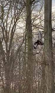 Reddet i tide – en stor musvåge sad hjælpeløst fast 6 meter oppe i et træ, og kunne ikke komme fri. Læs hele den fantastiske redningshistorie på side 8 i magasinet.