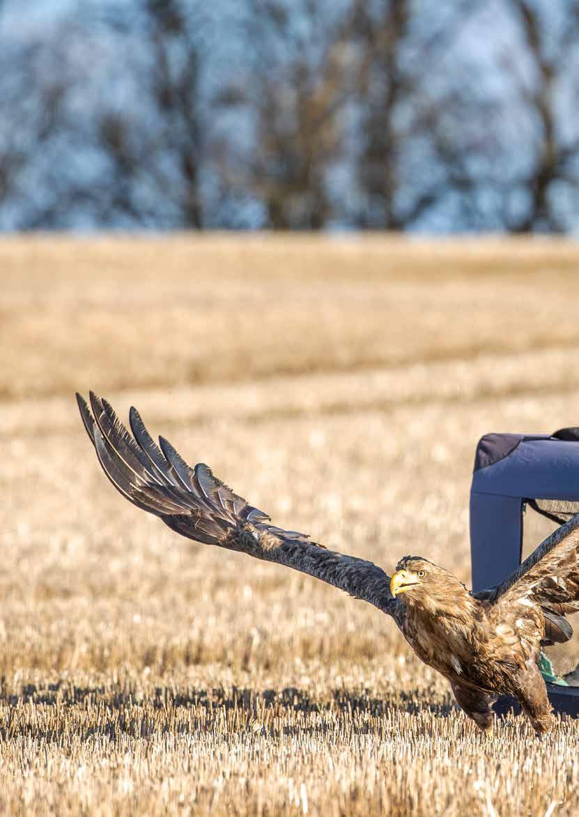 Se havørnen sprede vingerne og lette efter at være kommet til hægterne på Dyrenes Beskyttelses vildtplejestation. 8