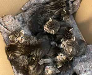 10 små kattekillinger var dumpet i en skraldespand ved Langesø på Fyn. Heldigvis blev disse killinger fundet af hunden Lady Gaga og dens ejer, der var på gåtur. Det lykkes at redde 8 ud af de 10 killinger.