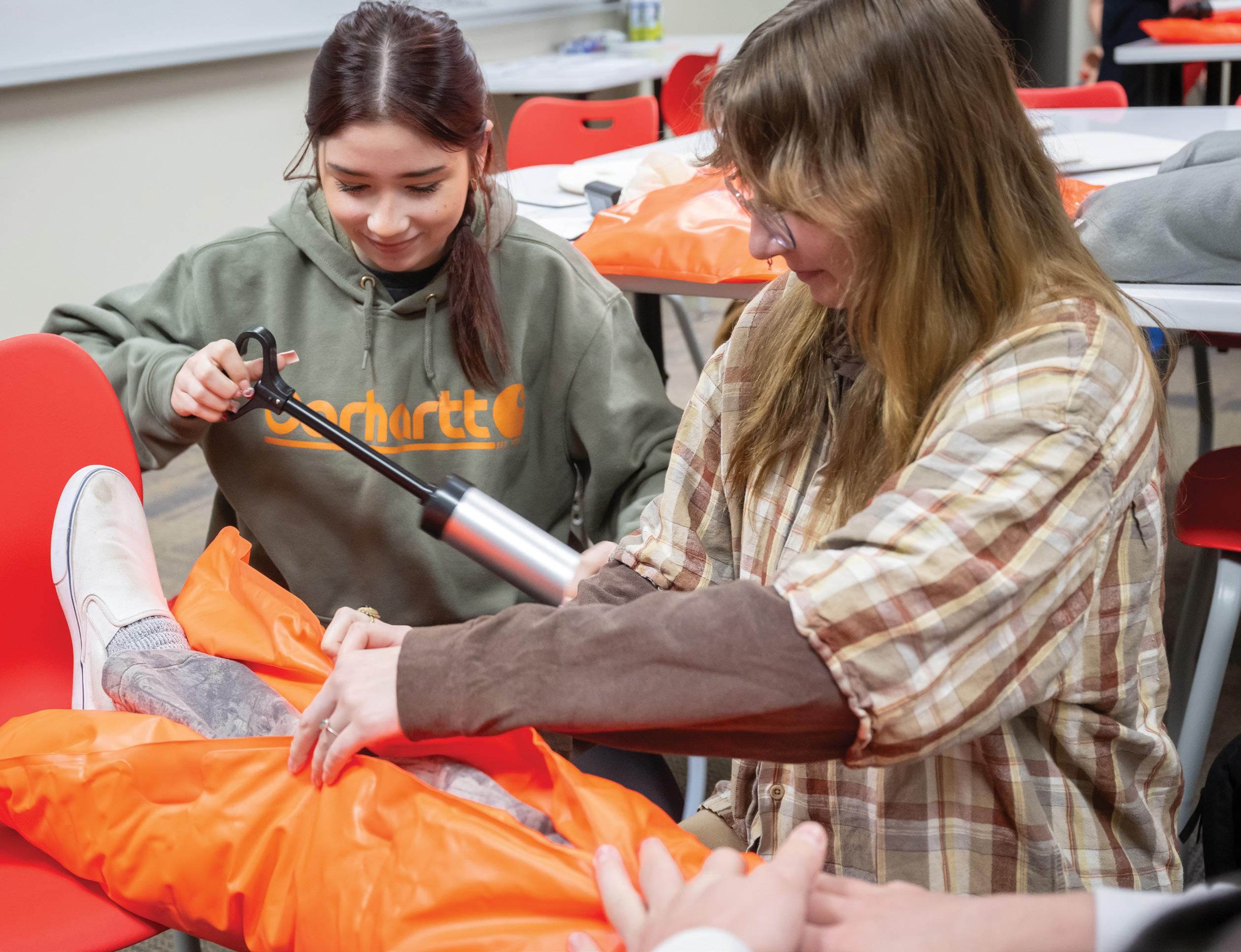 Students in the EMS Program in the Dysart District practice splinting techniques during a class at Valley Vista High School. The EMS Program is one of 19 Career and Technical Education programs in the district that train students on a variety of trades and provide real-world, hands-on experiences that oftentimes lead to industry certifications and jobs right out of high school.