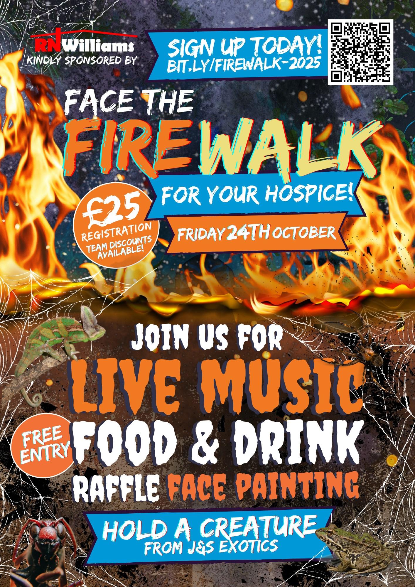 St Kentigern Hospice is calling on the community to face the flames this Halloween as the popular Fire Walk returns for its third year. Taking place on Friday 24th October 2025 at R N Williams & Sons, St Asaph, the event promises to be bigger and bolder with a new “Fright Night” theme.