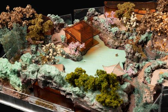 The space of Axis I is translated from the Great Temple of Amun. The flow of water, the plaza of columns and the undulating topography are the main elements that make up the space. The water system that runs through the axis directs one's gaze towards the Valley of the Kings on the other side of the Nile. It connects the temple, where the pharaoh lived during his life, with the Valley of the Kings, where he lived after his death.