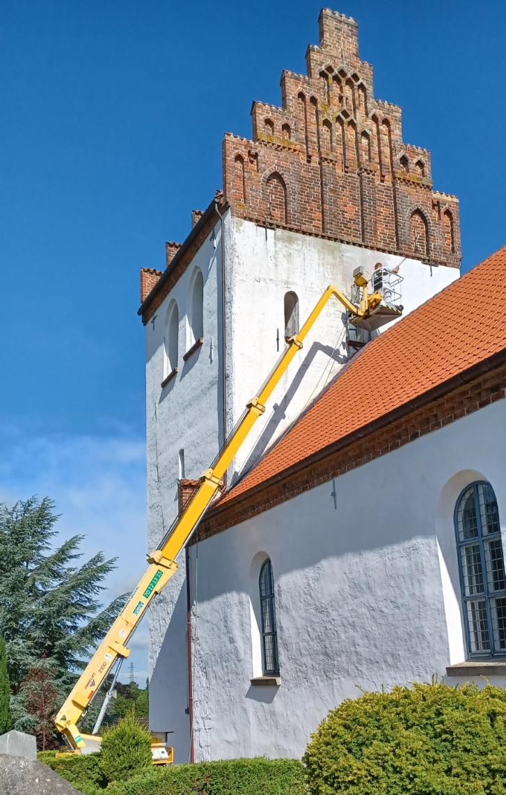 Kirken blev omsider smukt kalket i sommeren.