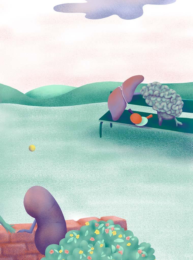 INHALT VORWORT 2 Stark durch Kooperation TITELTHEMA 4 Organ Crosstalk KOMMUNIKATION 10 Mikroumgebung STOFFWECHSEL 16 Abnehmen beginnt im Kopf BALANCE 22 Willkommen auf Planet Darm GEDÄCHTNIS 28 Wenn der Darm vergesslich macht RISIKOFAKTOR 34 Mehr als nur ein Husten WECHSELWIRKUNG 40 Wenn ein Schlaganfall das Herz schädigt HERAUSFORDERUNGEN 46 Post-COVID: Viele Fragen, etwas Hoffnung NEWCOMER 48 Einzigartige Gewebeproben – neue Ansätze MITTEILUNGEN, TERMINE 50 UND EHRUNGEN IMPRESSUM 52 KOSTENLOS BESTELLEN: DZG-MAGAZIN.DE/ ABONNEMENT