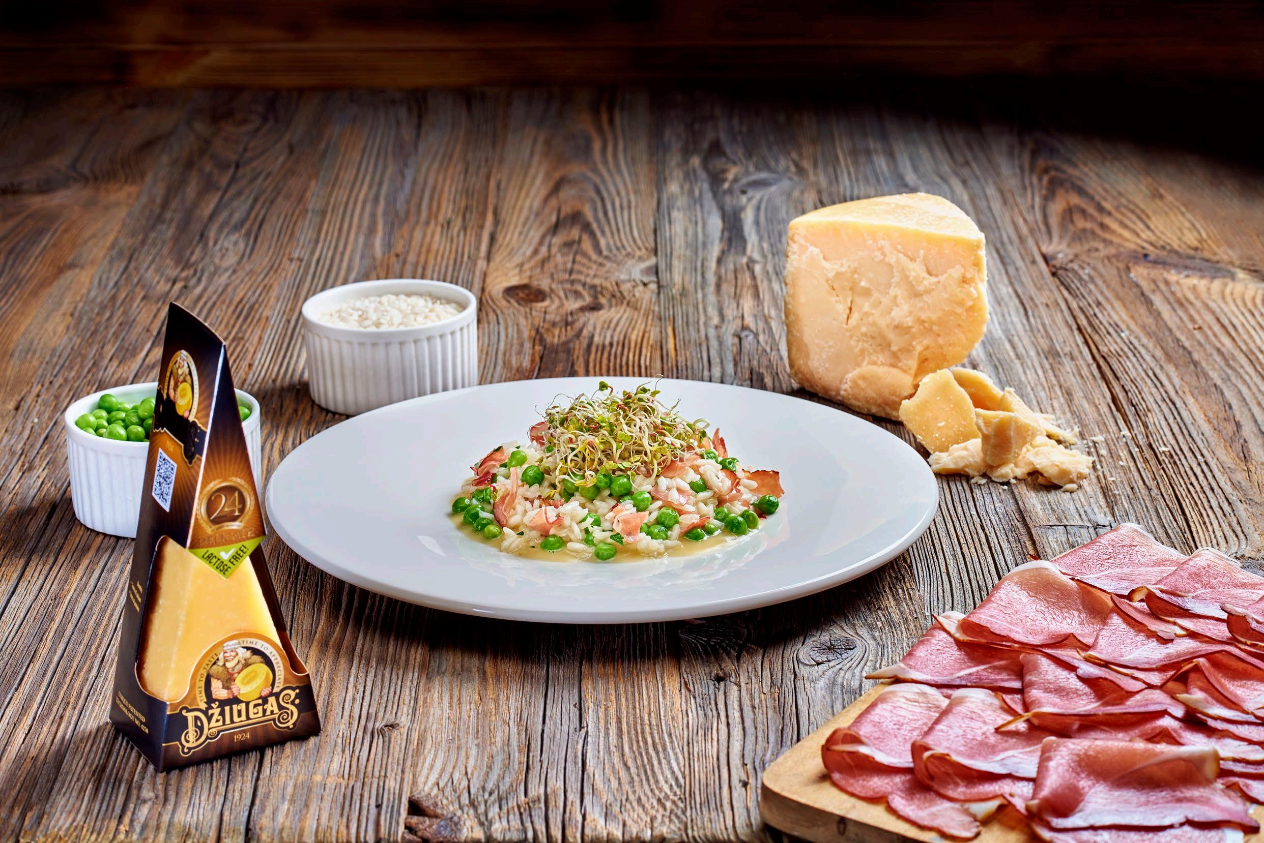 Risotto with green peas and grated „Džiugas Delicate” cheese, aged for 24 months